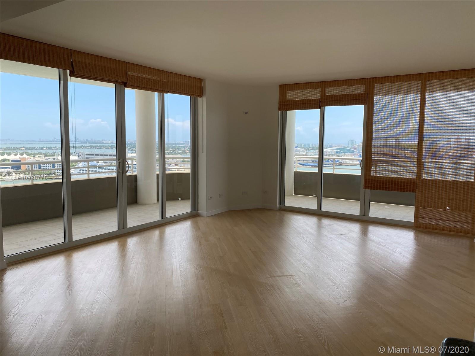 Enjoy Brickell Key Living!! Luxury and private condominium with breathtaking unobstructed water views overlooking Biscayne Bay, Port of Miami amazing 3BD/2.5BA, 400 sqft wraparound balcony with panoramic views, high ceilings, wood floors, spacious kitchen with granite countertops, split floor plan with oversized master bedroom, walking closets and more. 2 parking spaces assigned and all the amenities of a Luxury high rise. Two Tequesta includes 24h security, Concierge, valet, pool, tennis court, squash, 2 level fitness center and more. Easy to show.