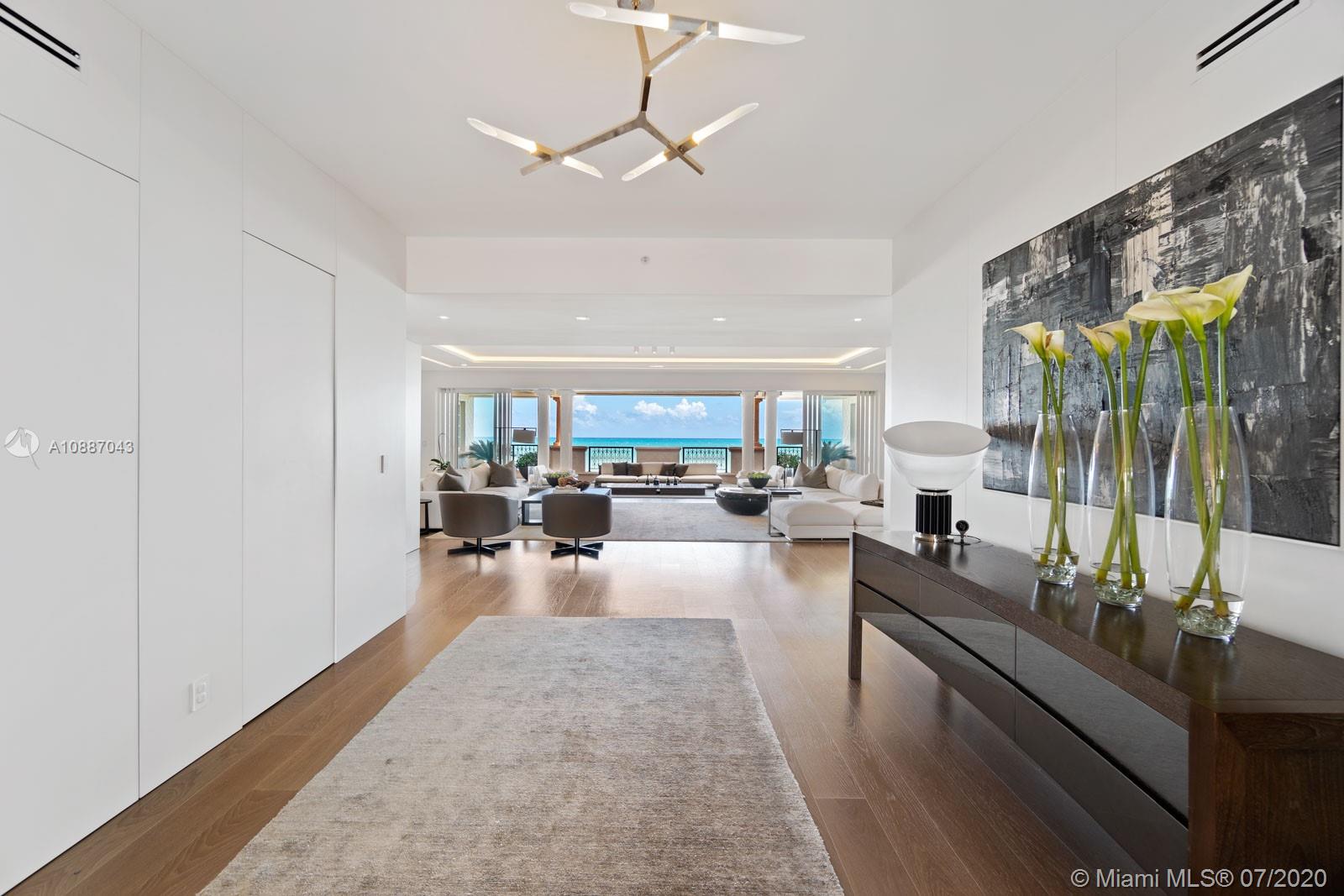 One of a kind turnkey, 7 Bedroom 8 Bathroom Lower Penthouse Residence Features 7,000 SF of Interior Space with the ideal floor plan featuring abundant natural light throughout the day. Unobstructed and Spectacular Direct Ocean Views. 2018 Renovation with No Expense Spared. Unparalleled in its design and finish the flow-through floor plan boasts wide-plank Italian Oak Wood Floors, Custom Lighting and Savant Smart Home, Wine Cellar for 400 bottles, Chef’s Kitchen with Top-of-the-line Miele Appliances, Maids Quarters with a Separate Entry. The Luxurious Master Suite Features Marble Master Bath & Glass Rain shower.