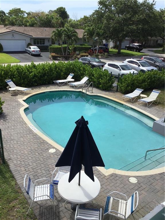 Freshly painted and new carpets .Rarely available 2/1 at Coral Ridge Place Condo. Located in the prestigious Coral Ridge Country Club Estates. Pet friendly building ( 1 pet 30 lbs or less -2 pets 50 lbs or less). Custom cabinetry, stainless steel appliances, granite counter tops, Marble bath vanity, impact windows,blinds, swimming pool, assigned storage, 2 tandem parking right next to security entrance gate,property is fenced and gated for added security, use of yard area directly off of unit, washer and dryer in unit.