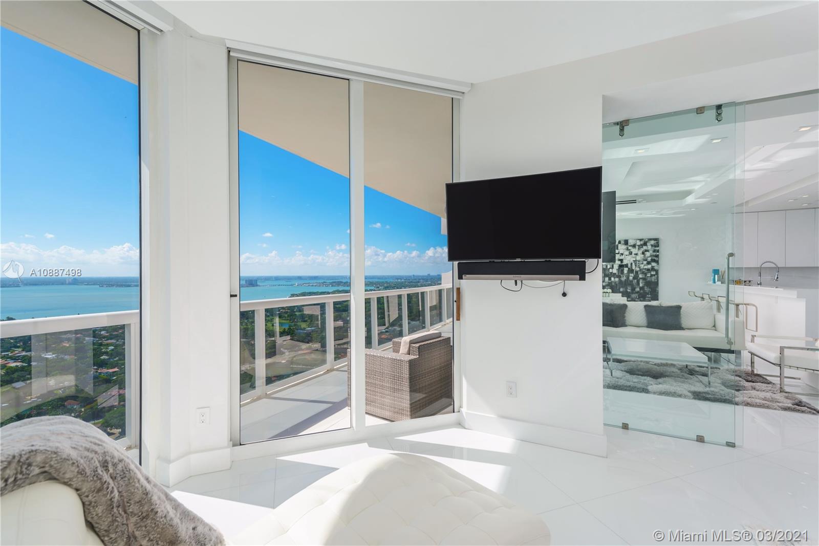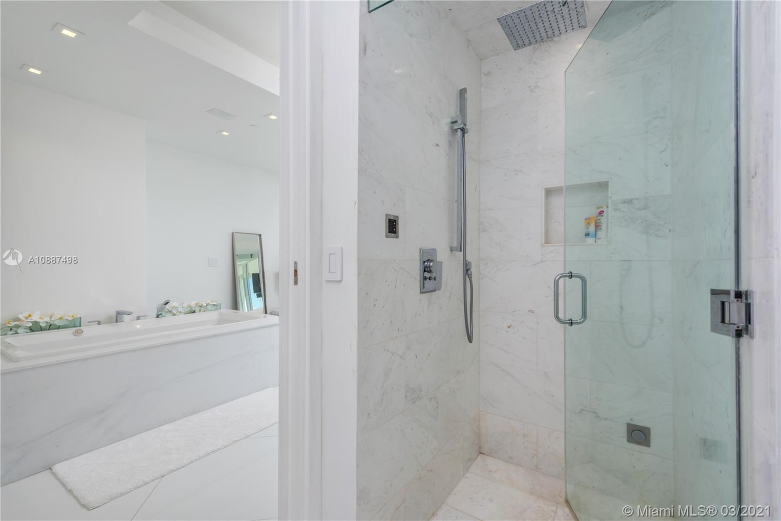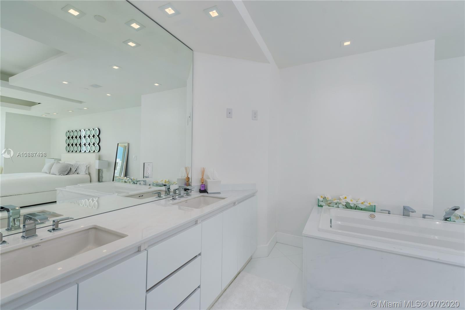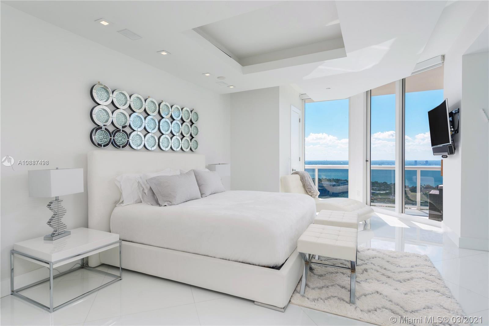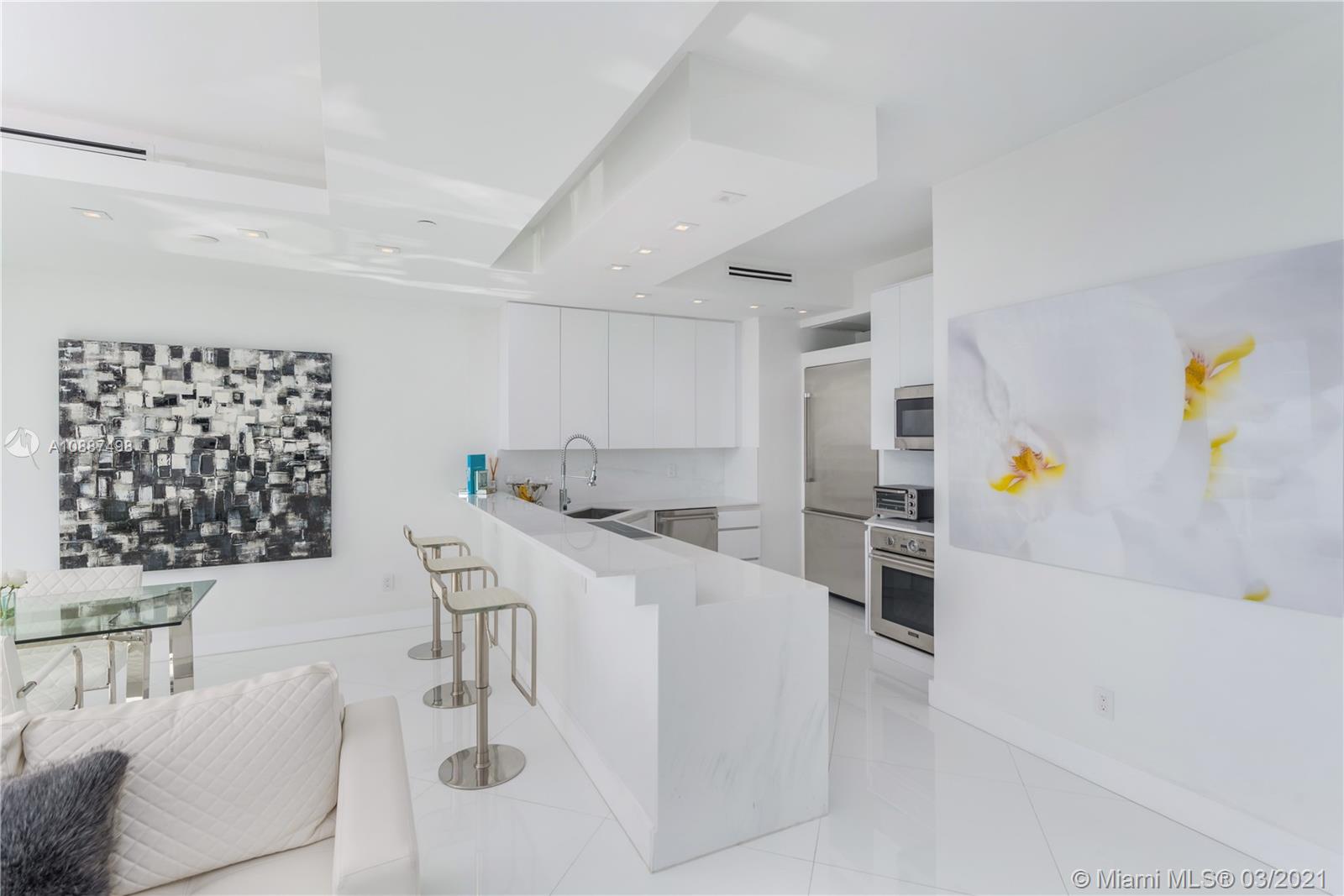 Enjoy breathtaking views of the bay and city skyline from this one-of-a-kind designed penthouse. Throughout the condo are coveted features including floor- to -ceiling windows providing plenty of natural lighting; electric shades; LED custom lighting, high ceilings & marble floors throughout. The kitchen opens to a large living and dining room area, with top of the line appliances. Expansive suite bedroom is a showcase. Being offered furnished. The Blue Diamond Condo is one of Miami Beach’s most sought after addresses. Enjoy luxury beachfront living with five-star resort-style amenities.