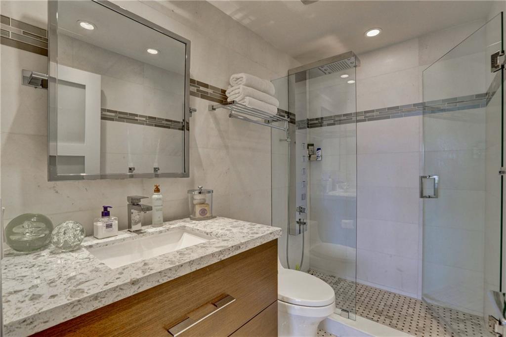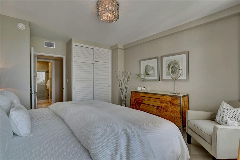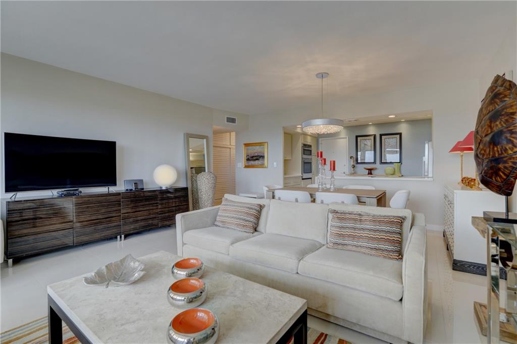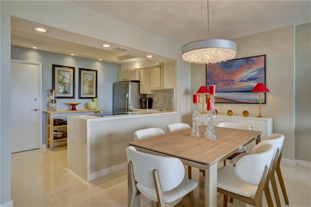 This impeccably designed, meticulously maintained, jewel of Coral Ridge Towers is ready for you to make it your own. From the moment you step through the entry foyer until you reach the generously sized master bedroom it truly defines modern elegance. The stainless-steel appointed kitchen opens directly into the living areas grounded by a beautiful white quartz waterfall counter. The huge walk-in frame-less shower with its European inspired finishes and shower panel massage tower, truly make this a complete package of all-in luxury. To top it off, there is the spacious balcony offering a wonderful place to relax with inspiring southern facing ocean and seaside town views. ***Dining Room Chandelier is not included in sale.***