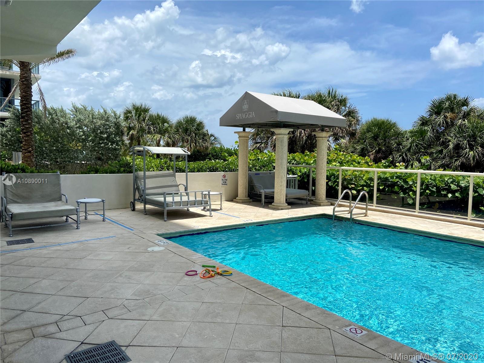 Great Location on Surfside Beach and walking distance to Bal Harbor Shops. Fully renovated one bedroom with den and two full bathrooms with beautiful ocean view. Washer and Dryer in the unit. The price includes all furniture inside the unit, buyer simply needs to just move in. The building includes full service, valet, management on site, beach service, fitness center, 24 hr security and controlled access to the elevator and the building.