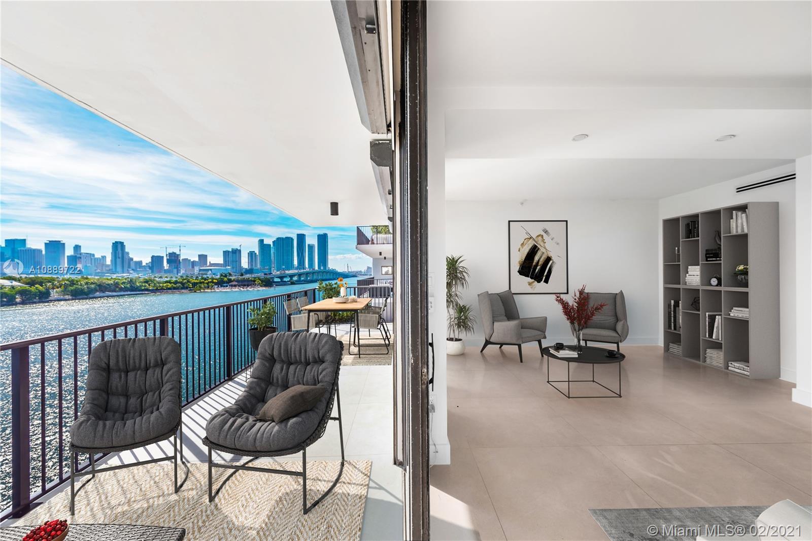 Light & bright sleek white modern residence boasts 2 beds plus den, 2.5 baths, 2,010 SqFt & nearly 700 SqFt of 2 wide terraces overlooking Biscayne Bay, Cruise Ships & Downtown Miami Skyline. Enter through the semi-private elevator landing (only 2 units) into an expansive combined living/dining room area with unobstructed views, a perfect place for a quiet night in or entertaining guests. Enjoy a custom Italian Kitchen providing ample storage space, professional appliance suite & a generously sized stone topped center island. Spacious master offers the ultimate in privacy and magnificent water views through floor-to-ceiling glass doors. Amenities include double height gallery-like lobby, 24 hour security, valet, 2 bayfront pools & tennis courts.. One of the best building in Miami!