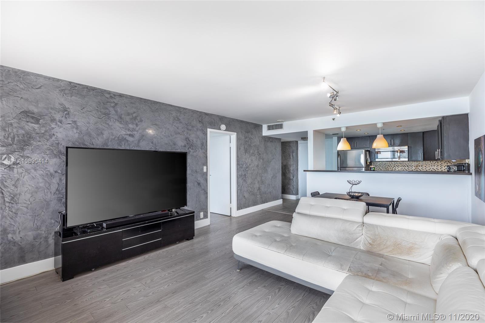 Chic, fully renovated two bedrooms located in the desirable North Bay Village! Enjoy scenic south views of Biscayne Bay and Miami Beach from its vast balcony, accessible from all living areas. Spacious split floor plan for privacy and peace of mind. The kitchen is fully upgraded with maple wood cabinetry, stainless steel appliances, and granite countertops. The unit comes with 2 parking spaces. The building is full of amenities, including 24 hr security, an Olympic-sized swimming pool, Jacuzzi, on-site laundry facilities, stores, a gym, hair salon, restaurants, a marina, and more!