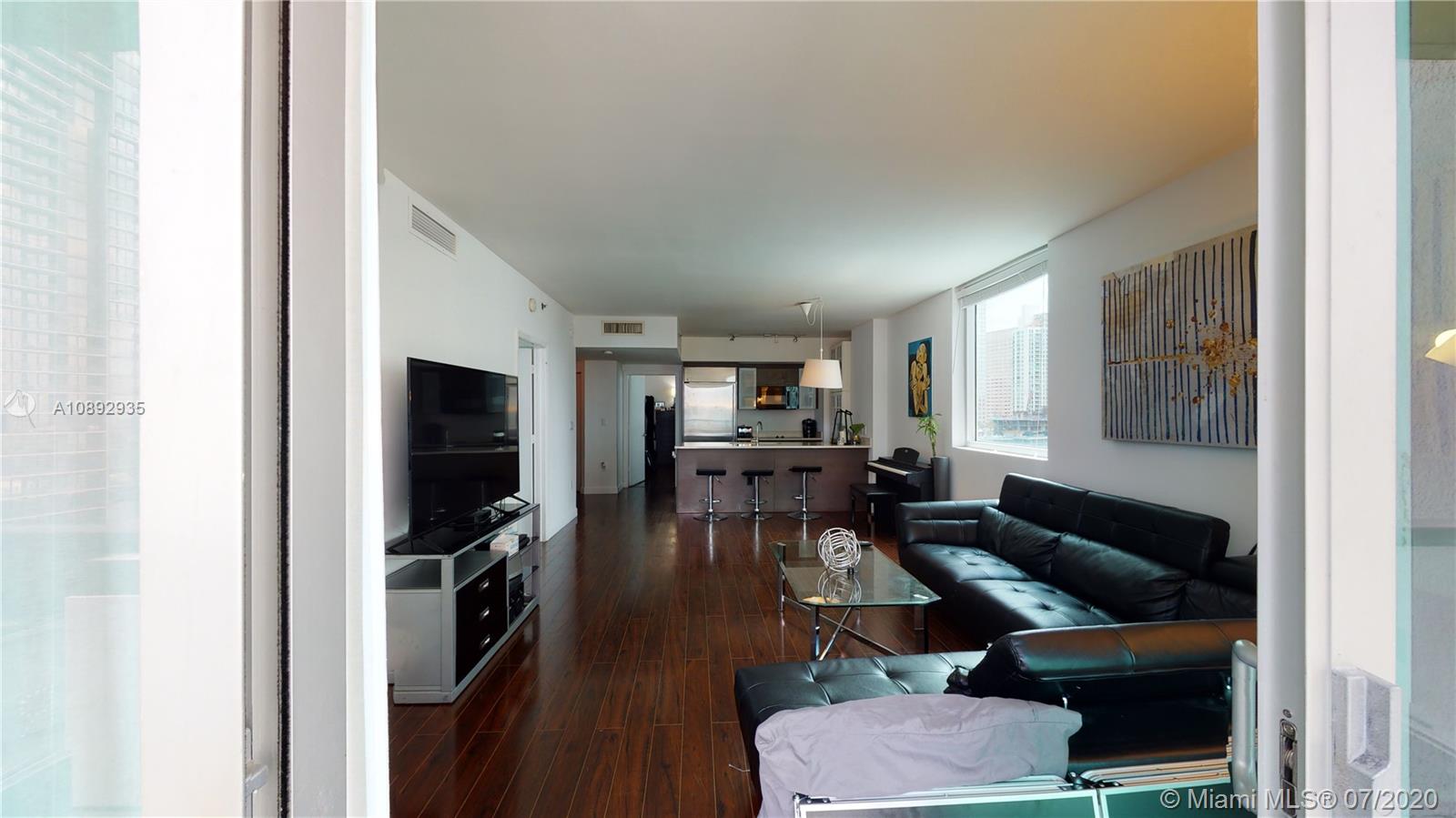 BEST PRICED SPECTACULAR CORNER UNIT! Spacious bedrooms, Wood floors, modern open kitchen with stainless-steel appliances, custom closets. Enjoy beautiful views of Miami River and downtown skyline. Minimum lease term is 30 days- a great option for investors. Centrally located walking distance to the people mover, Brickell financial center, restaurants, Downtown, Marry Brickell Village, the metro mover, and the new Brickell City Center. Minutes away from the New Performant Arts Center, Bayside, and the American Airlines Arena. Enjoy world-class amenities, two swimming pools - including a rooftop pool and sundeck on the 42nd floor, and a swimming pool with poolside cabanas on the 11th floor; concierge 24/7, valet parking, spa, state of the Art Gym, Theater, and a party room; among others.