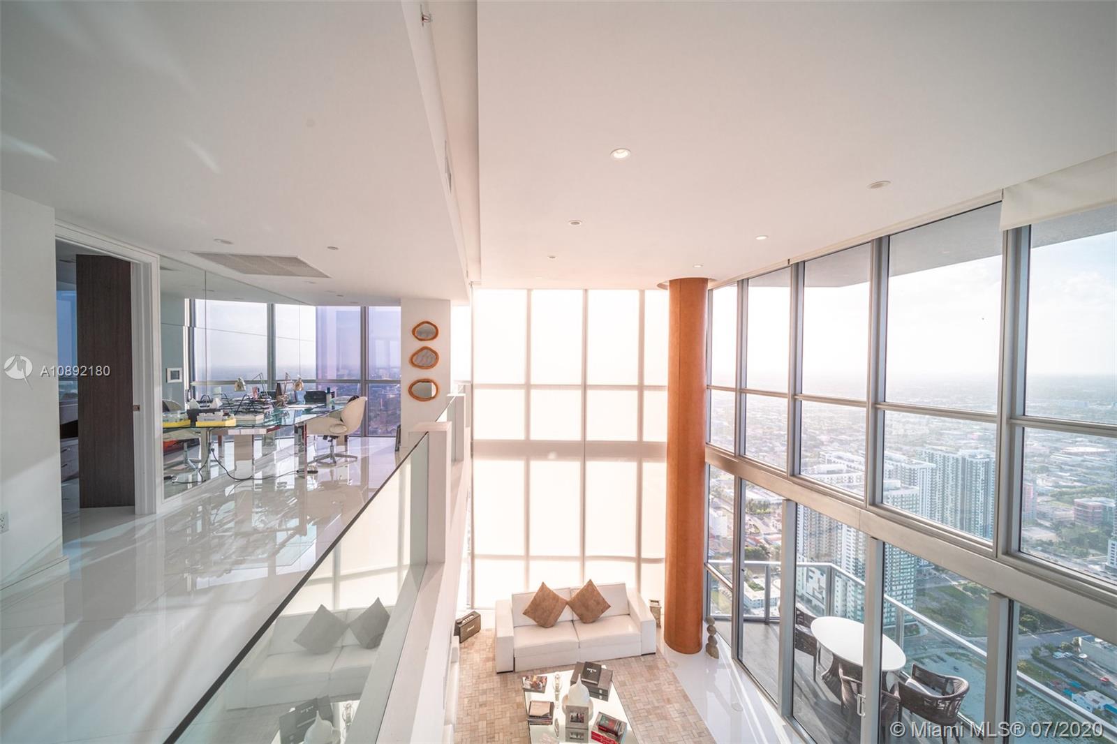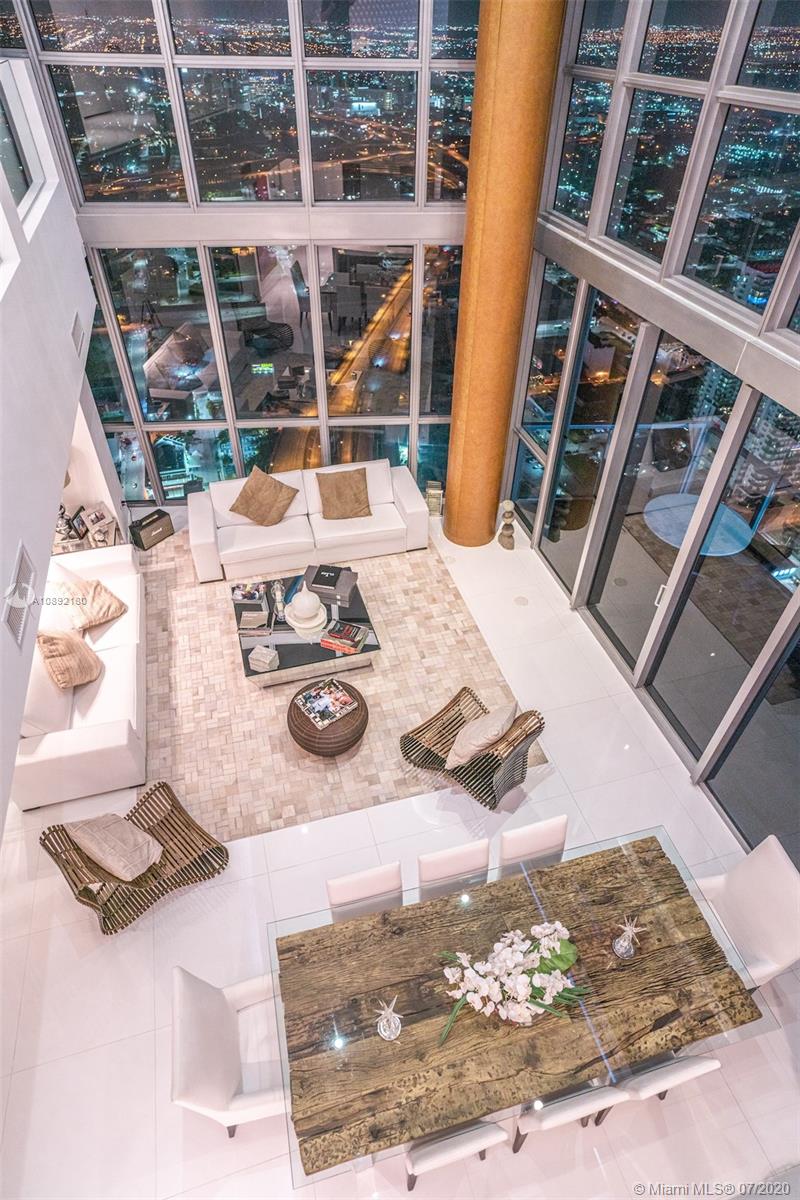 Soaring above downtown from the 63rd floor of the Marquis Miami tower, this magnificent 2-story penthouse captures sweeping 270° views of the city and Biscayne Bay. Two private elevators lead to the 2-bedroom, 2.5-bath condominium featuring 20’ ceilings and floor-to-ceiling window walls. More than 3,000 sq ft of open-plan living space features curated contemporary detail, chef-caliber kitchen with premier stainless steel appliances, a 2nd-floor media room, private view terrace and Crestron Digital System. Residents enjoy the luxury amenities of Marquis Miami, including 24-hour concierge, 2-story spa and fitness studio and 2 pools located moments from the waterfront, Museum Park, the Design District, American Airlines Arena, South Beach and the much-anticipated Miami Worldcenter.