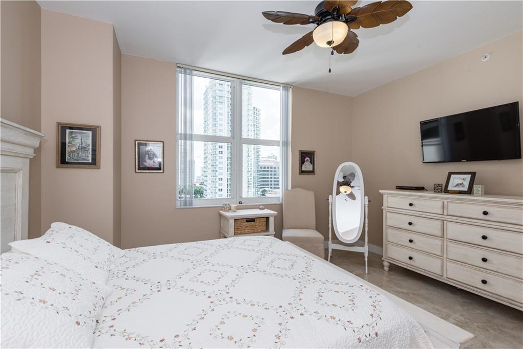 Beautiful, direct river views! Experience the downtown lifestyle with incredible city & river views. This single bedroom residence is located directly along the New River to watch the boats go by and enjoy the Annual Boat Parade from your own private balcony. This residence features oversized, high polish, rectified marble flooring throughout. Owner’s bedroom boasts large walk-in closet. Bathroom has also been completely upgraded with a modern walk-in shower with a clean, modern glass enclosure. Stone countertops & backsplash, Italian shaker style cabinetry & stainless steel appliances in the kitchen. This single bedroom residence has open slider access to a private balcony from the livingroom extending the living space outdoors for morning cofffee or evening cocktails.