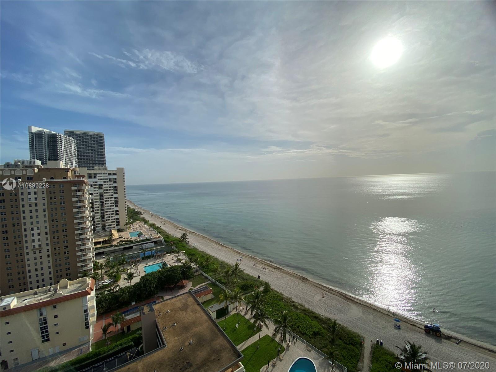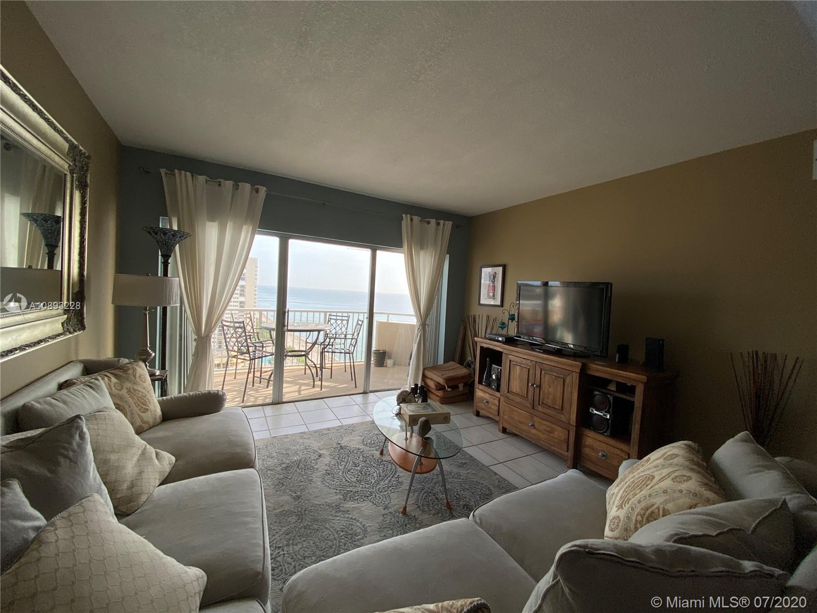 Great amazing view from this 18th floor unit featuring white tile floors throughout, updated kitchen and bathrooms. Owner will consider a trade for a 2 bedroom unit North of the Hemispheres. A/C unit replaced three years ago.