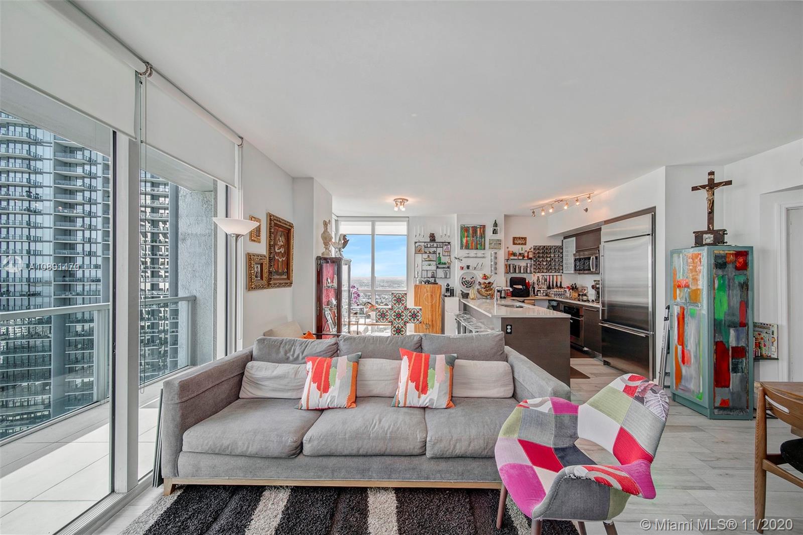 Amazing 2/2 corner high unit with Direct City and River View, extra-wide balcony overlooking Brickell and partial Bay. Split plan bedrooms each with walking closet and bathroom. Very bright unit with the best location across Brickell City Center, Metro Mover, Restaurants, Bars, etc. Short drive to Key Biscayne, Miami Beach, Coconut Grove and Coral Gables. Building has all amenities: Rooftop pool, amazing round shaped pool resembling the building architecture, gym pool, spa, sauna, steam room, movie theater, conference / party rooms. 1 assigned covered parking.
