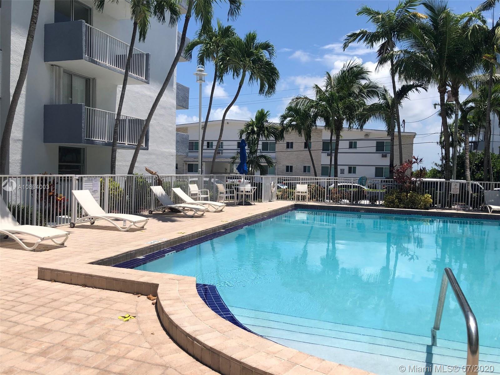 Garden style, 5 story building. Balcony off bedroom, 1 assigned parking space, 2 laundry rooms per floor, central A/C less than two years old, large walk-in closet, tile flooring throughout. Building offers pool, gym and security cameras. Up to 2 small pets okay. Minutes to the beach, grocery store and restaurants. On site management. Kitchen cabinets and most appliances removed, ready for your designer touch. Priced to sell.