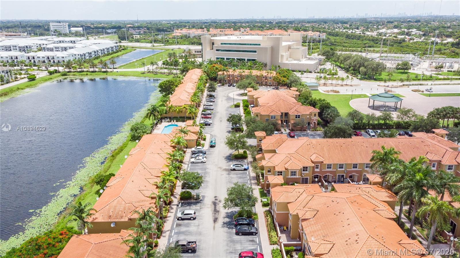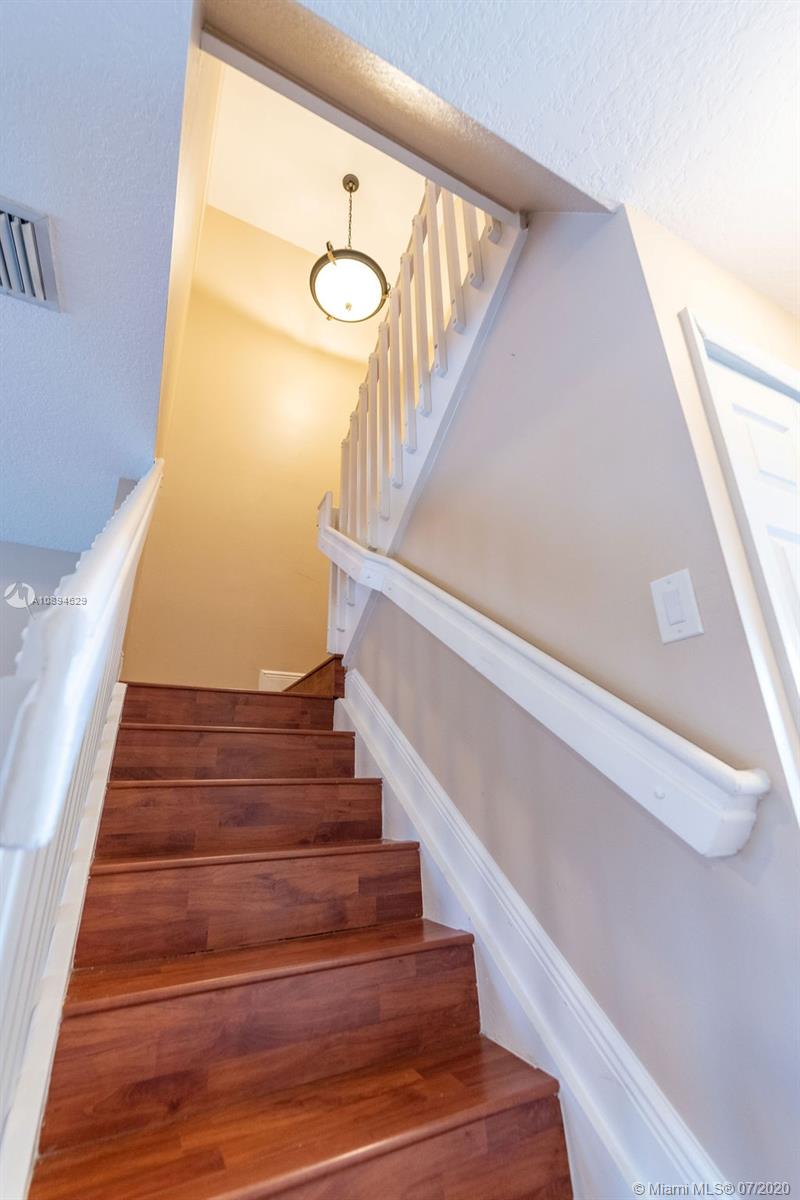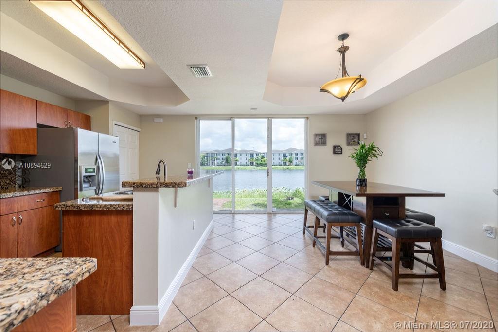 Beautiful 3 bed 2.5 bath townhouse style condo in Pembroke Pines! Centrally located to restaurants, grocery stores, the highway, malls, and good schools. Tile flooring is located throughout the entire first floor with a laminate wood staircase continued into the bedrooms upstairs; all flooring was replaced within the past 5 years. The kitchen is spacious and has been upgraded with granite counters and features a large cooking island. Right off the kitchen and dining room is a sliding door with stunning views of the lake while you enjoy your meals. Not only is this corner unit waterfront, it is located right next to the pool and spa. This home has two parking spaces directly in front and a bonus guest spot for any of your visitors. Fully hurricane protected with panel shutters.