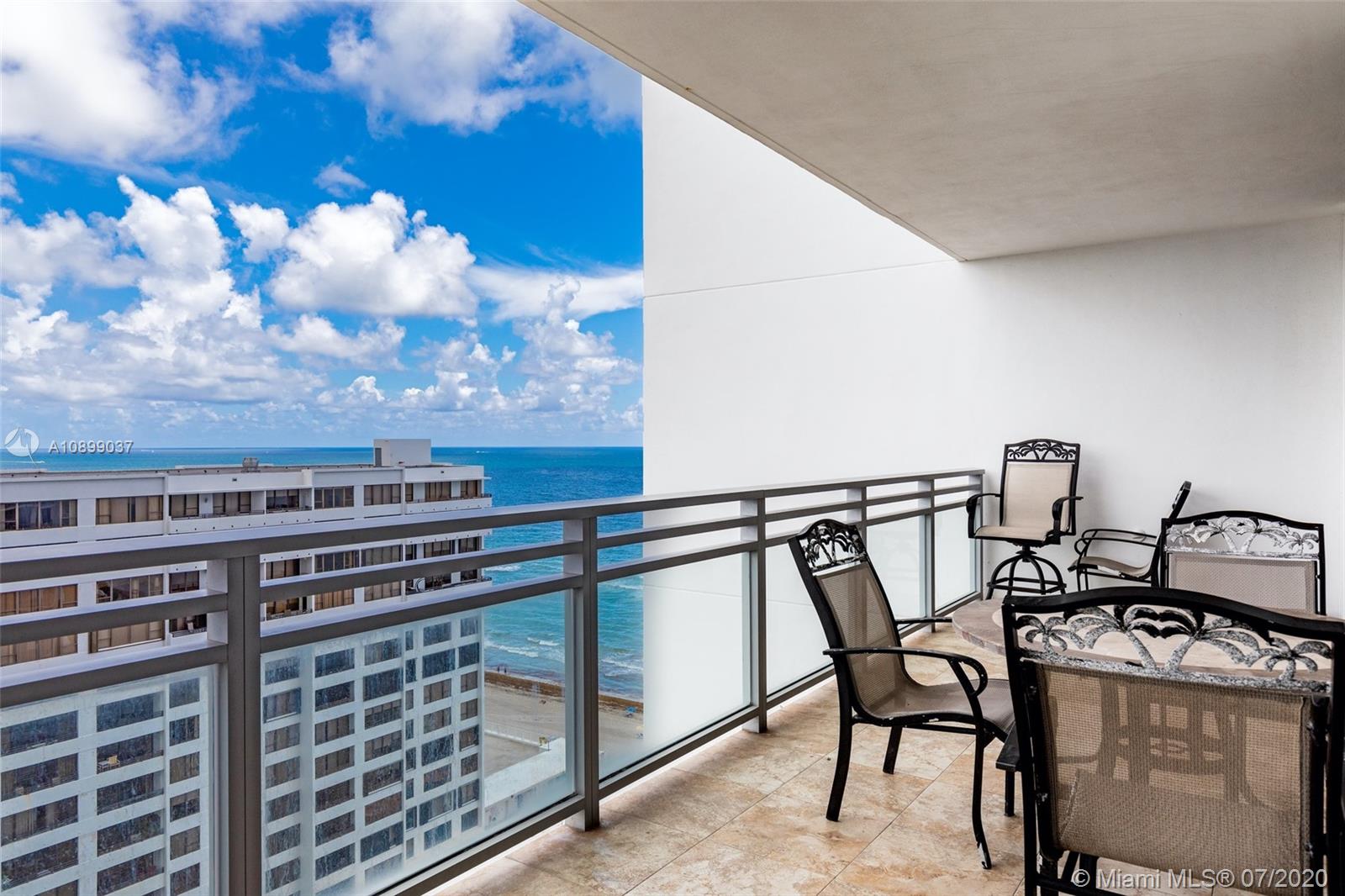 Stunning residence with ocean and intracoastal views at the Diplomat! Residence features 2 bedrooms, 2.5 bathrooms + den, and 2,157 Sq Ft. Flow through floor plan with spacious living areas. Gourmet kitchen with a gas range stove & stainless steel appliances. Master bedroom his & hers walk in closets and bathroom, shower and separate bathtub. Impact windows and doors throughout. 2 assigned parking spaces! Resort style amenities include: Valet, gym, social room, billiard room, sauna and massage room, movie theater, pool and beach service!