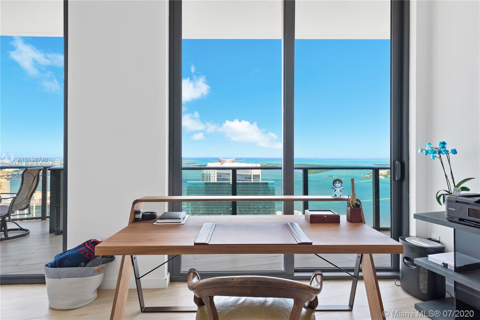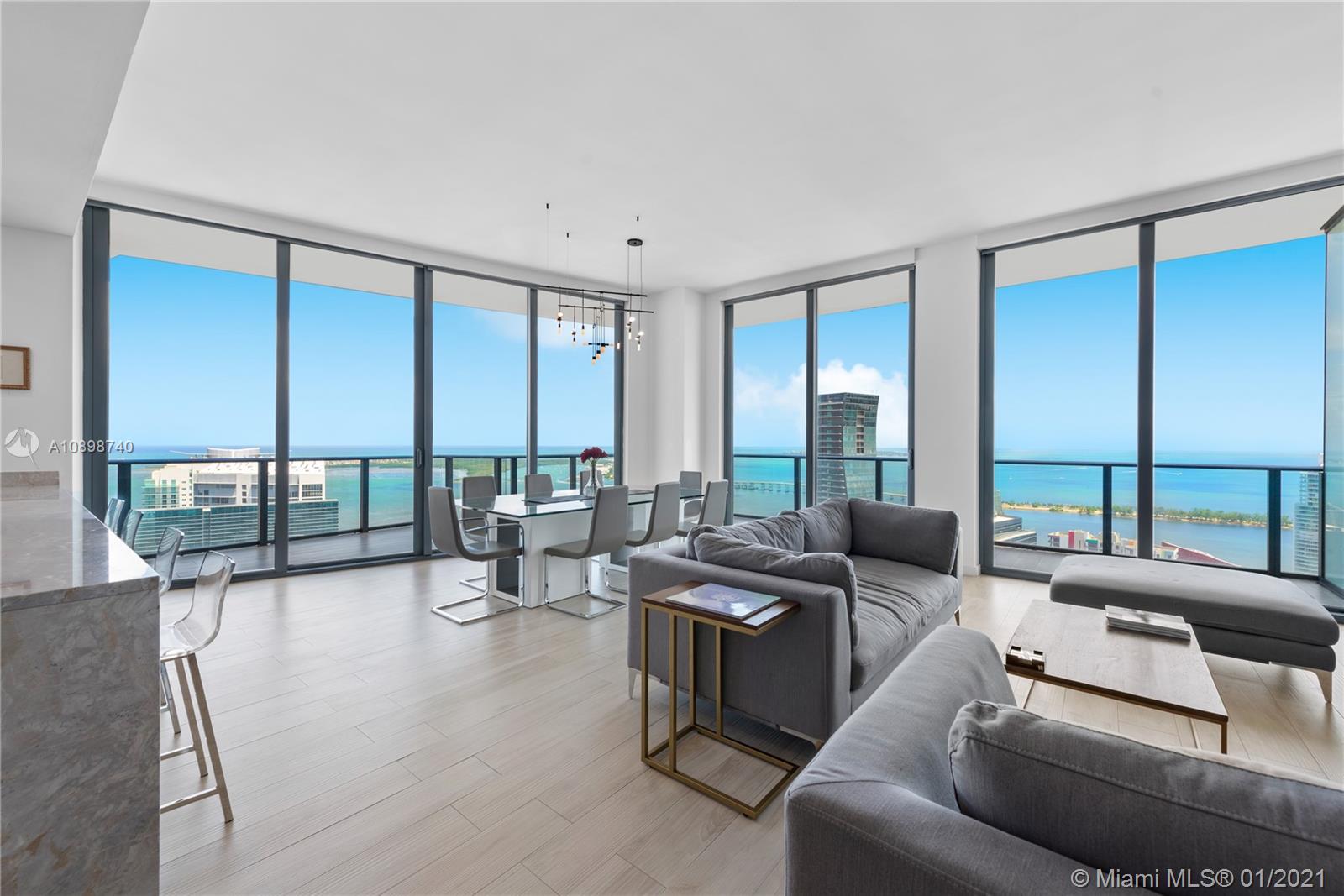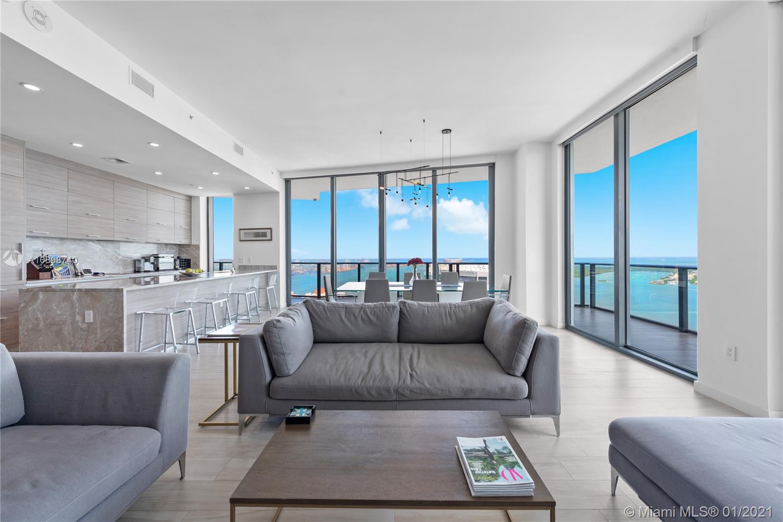 This meticulously renovated 3bed/3.5bath Penthouse uses its space to its utmost potential and is intricately designed for those who live their lives with an inherent sense of style and sophistication. Penthouse 5205 offers incredibly unobstructed views from East to Miami Beach and South to The Keys. The oversized Owner’s suite features a sleeping and sitting area and large walk-in closet. Scenes of the bay, ocean, Miami Beach, and Coconut Grove can be enjoyed from the wrap-around balcony. Includes 2 garage spaces on the 1st level of parking and an extra large storage area. With Outstanding amenities such as a rooftop pool, gym, spa, billiard room, private theatre, kids’ room, party room, World class Fi’Lia restaurant and Saam bar, SLS at Brickell paints the details of a life well-lived.