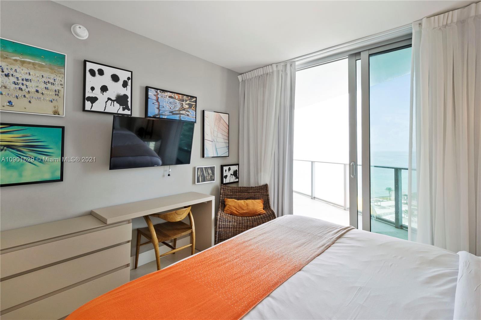 Right on the beach, CORNER UNIT with ocean and city views, wrap around balcony, fully furnished and decorated, spacious floor plan, washer and dryer, plenty of closet space plus owner's closet that can be kept locked while renting. High demand for short term rentals at AIRBNB. Sophisticated condo hotel and resort. Beautiful and convenient amenities including a restaurant, cafe, pool, spa, gym, store, beauty salon and beach service. This unit can be rented by owner with no restrictions or included in the hotel program. More details provided upon request.