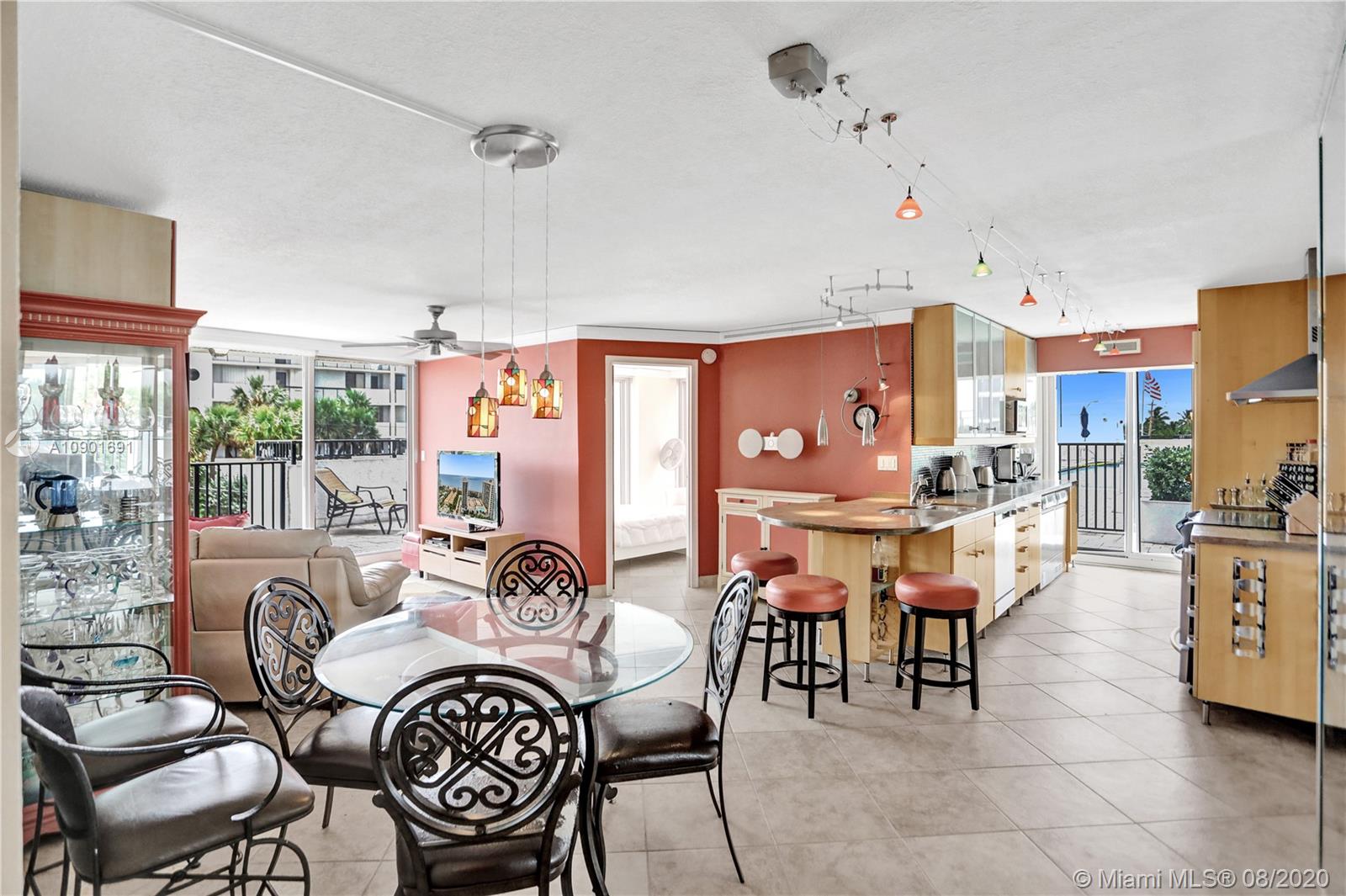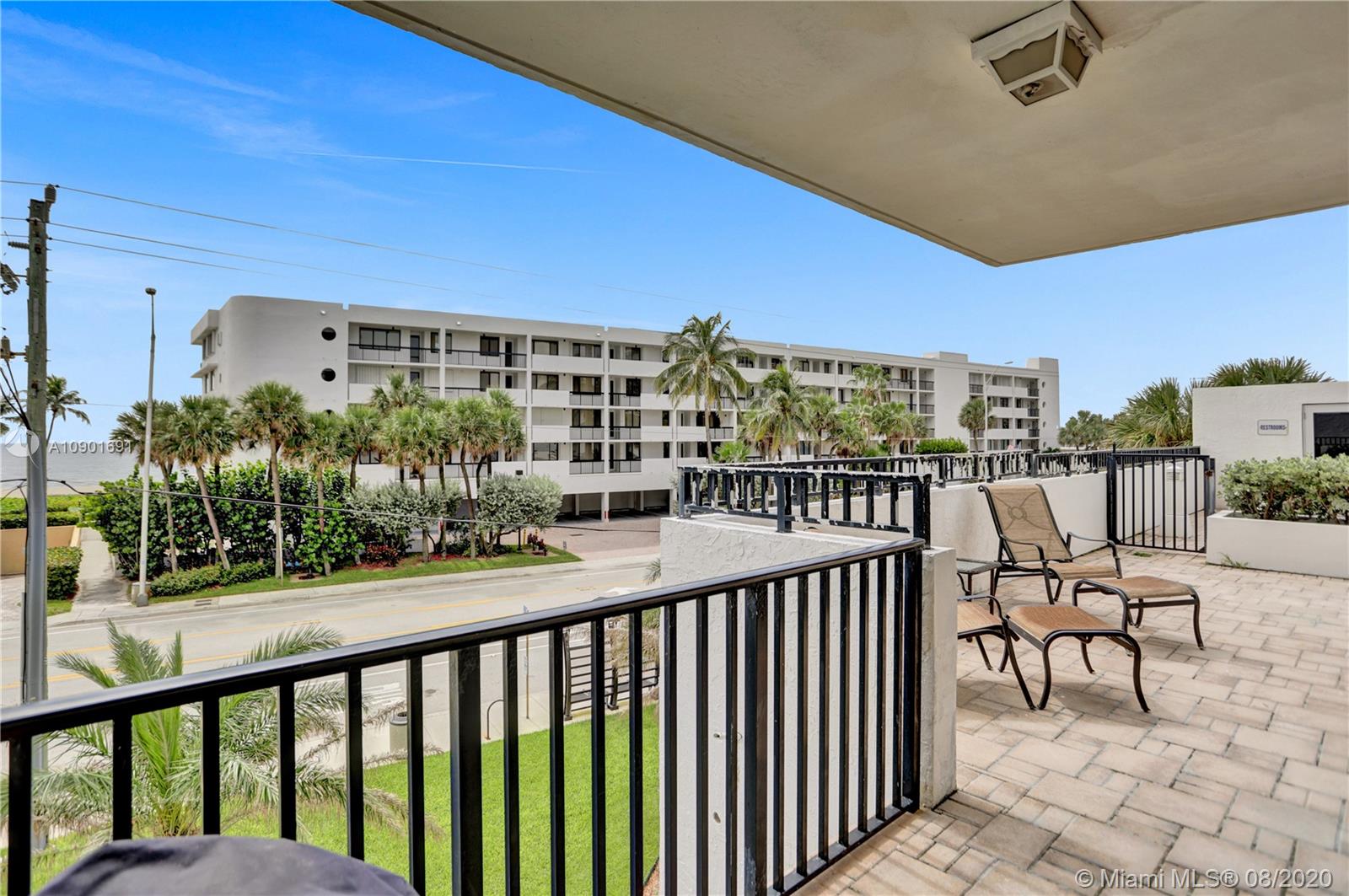 This ONE OF A KIND END UNIT LANAI features: DIRECT ocean views, DIRECT OUTDOOR ACCESS FROM 5 hurricane impact sliding glass doors (1 from each room) to an OVERSIZED,WRAPAROUND PATIO w/room for BBQ, dining & relaxing (500+ sq ft), AND direct access to pool, tennis etc. Fully renovated w/ hi-end ss appliances, some electronic shades, tons of storage, open kitchen, split floor plan, avail TURNKEY. Bldg is across public beach w/easy access (see pics). Resort type living. No rentals 1st year owned, but 90 day min lease 1 time per year thereafter. MUST SEE! This is a very special unit -- one of only two in the entire complex.