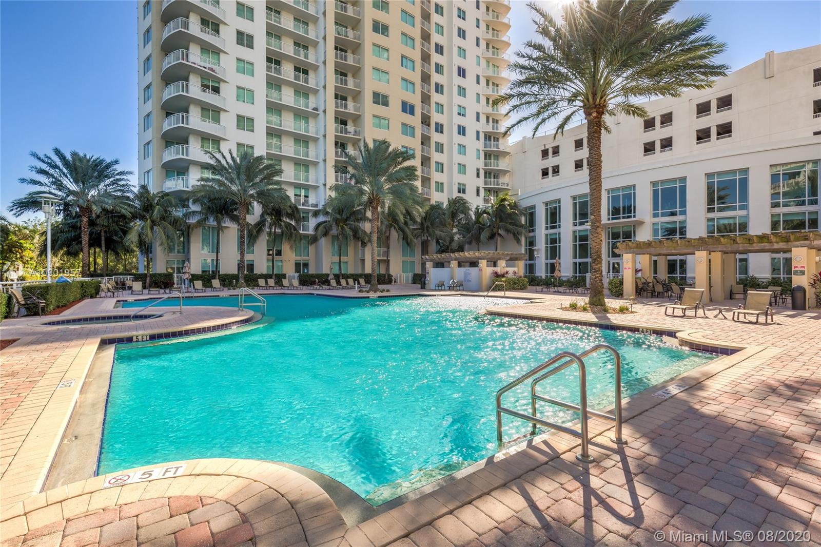 Largest spacious bright corner 2/2 with wraparound balcony & open kitchen. Golf Course, Pool, Sunset and Sunrise ocean views, has 2 deeded ASSIGNED parking spaces. Large master bathroom with Jacuzzi style bath and separate shower cabin, floor to ceiling impact proof windows , LED ceiling lightning with dimmers, brand new stainless steel appliances, washer and dryer with steam, NEST learning thermostat, new double shades in the master bedroom, 7 stages RO water filtration system ,granite counter tops in the kitchen. A lot of storage space inside the unit. 24 hr. security, valet parking, business center, tennis, spa & fitness center, jogging path, dog park, heated pool, and a billiard & party room. Best location too! Walk to the beach, Starbucks, Panera Bread, Gulfstream Park, etc.