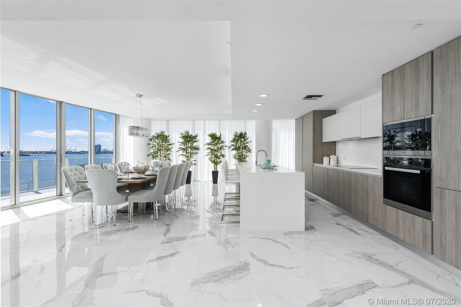 Enjoy unobstructed bay & Miami Beach views in this stunning residence in coveted Biscayne Beach. Enter this 4,473 SF residence through a private foyer that opens to breathtaking Biscayne Bay views w/80 linear ft. of living space facing directly east to the bay, floor-to-ceiling windows, 5 bedrooms, 5 full bathrooms & 1 half bath. Luxurious features incl captivating porcelain flrs, gourmet chef's kitchen with top-of-the-line appliances & 2 balconies overlooking the water. Oversized master w/sitting area & spacious closets in all bedrooms. Resort-style amenities that incl beach club w/cabanas, summer kitchen, 2 pools, jacuzzi, restaurant, lounge rm, theatre, business center, fitness center. Two reserved (side by side) parking spots –steps from your private vestibule on the same level.