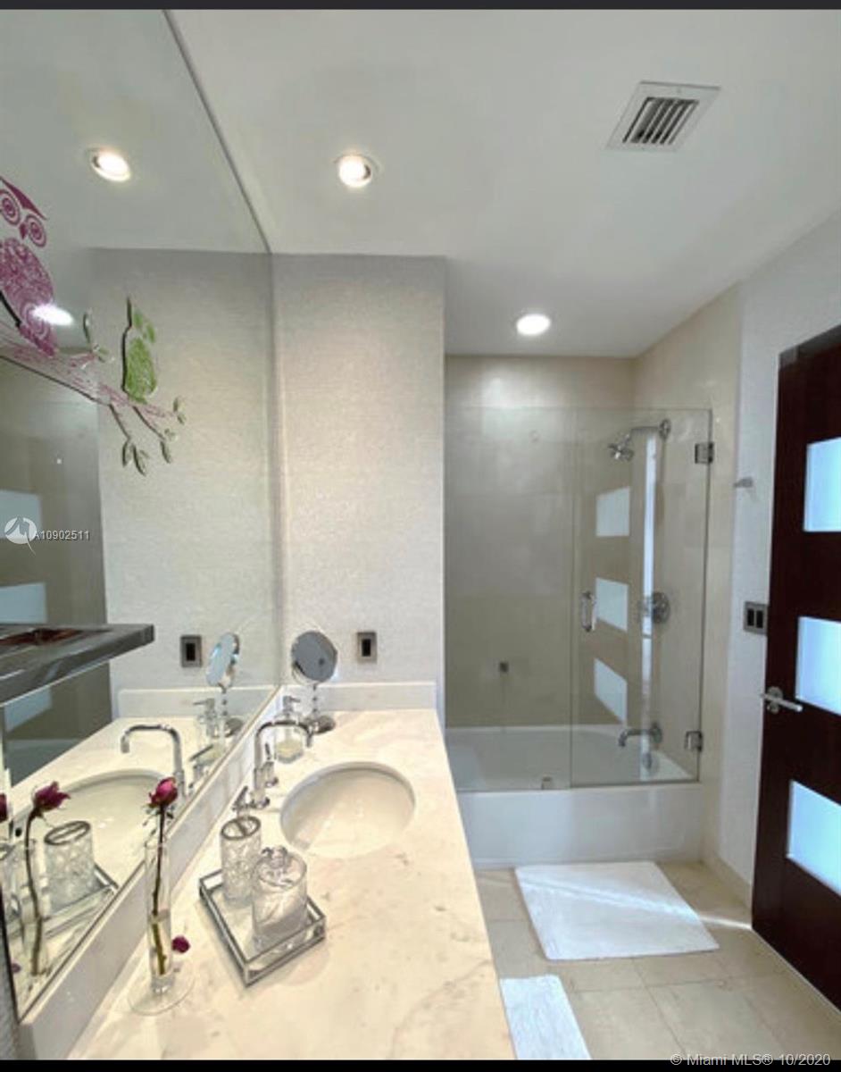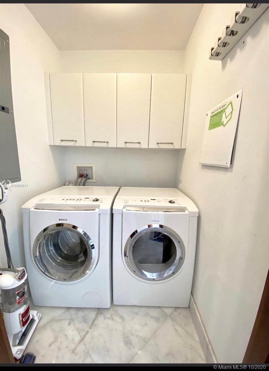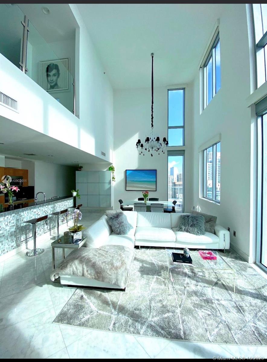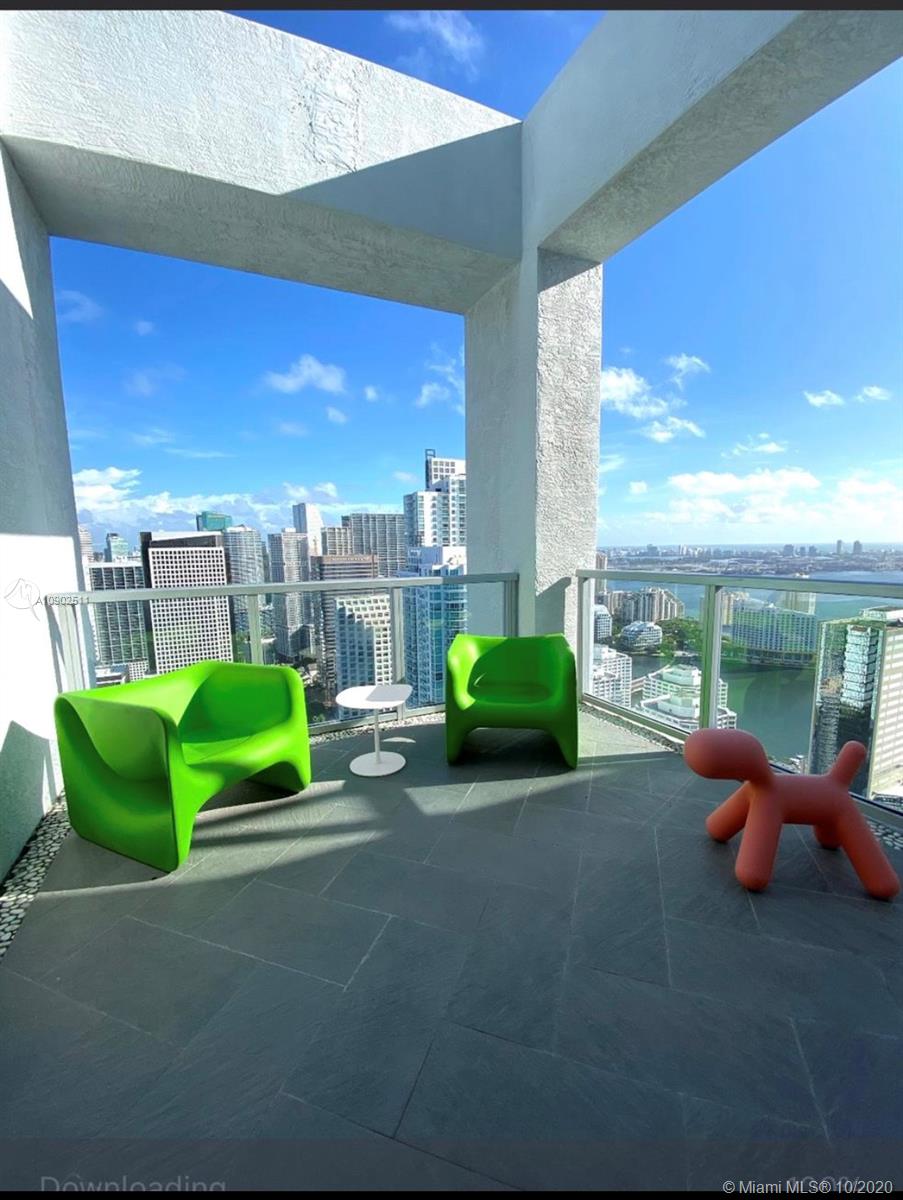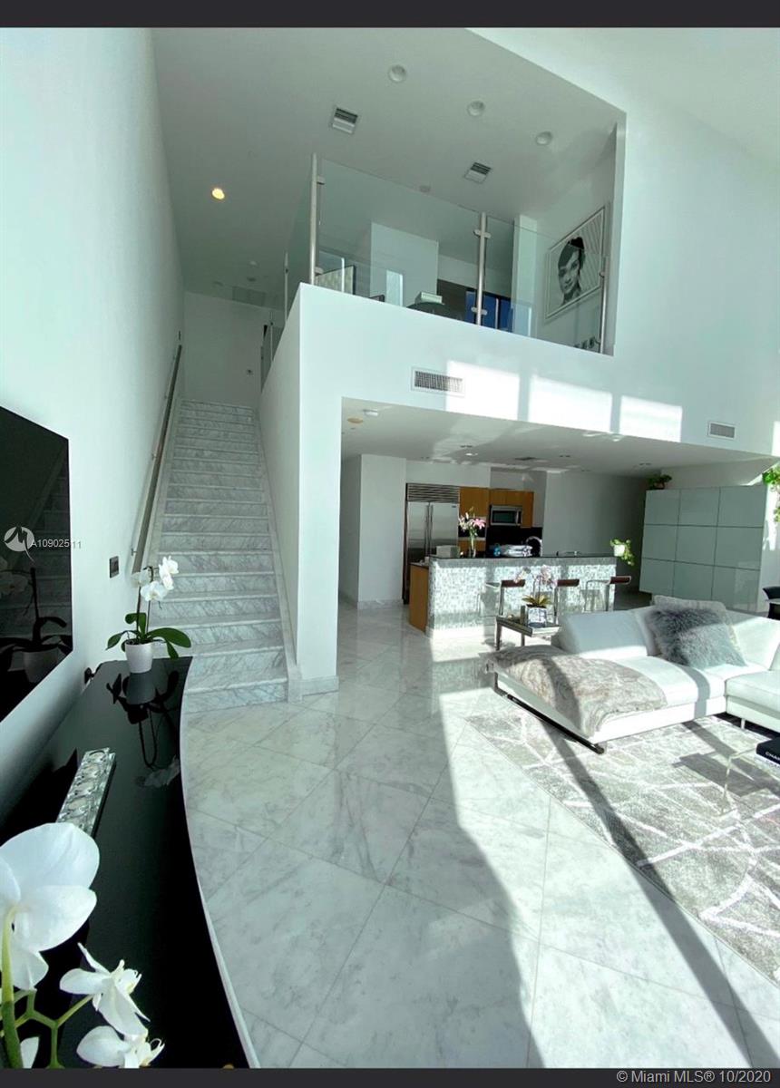 Spectacular 3 bedroom 2 stories apartment in the trending tower of 1060 Brickell. Carrara marble floors throughout the unit including the stairs. Kitchen with Miele coffee machine. Subzero refrigerator. Miele wine cooler with double zone. Beautifully furnished and decorated, unit has 3 big terraces and 1 Balcony. Two parking spaces on the second floor. Closets and doors are custom made. Ideal for families. Beautiful Bay and City views from every window in the apartment. Master bedroom is the entire upper level. Bring your clients.