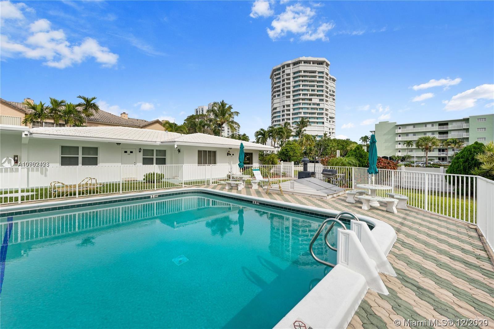 A rare opportunity! Spacious walk to the beach! Corner condo 1-story on ground floor Private pool. Everything included with all appliances, building laundry room steps away from condo. Private parking plus guest spaces. Short term rentals permitted. BBQ area near pool. Freshly painted building. Assessment paid by seller. Condo fee $490/month covers everything except electric. (Also available for rent and short term rent)
