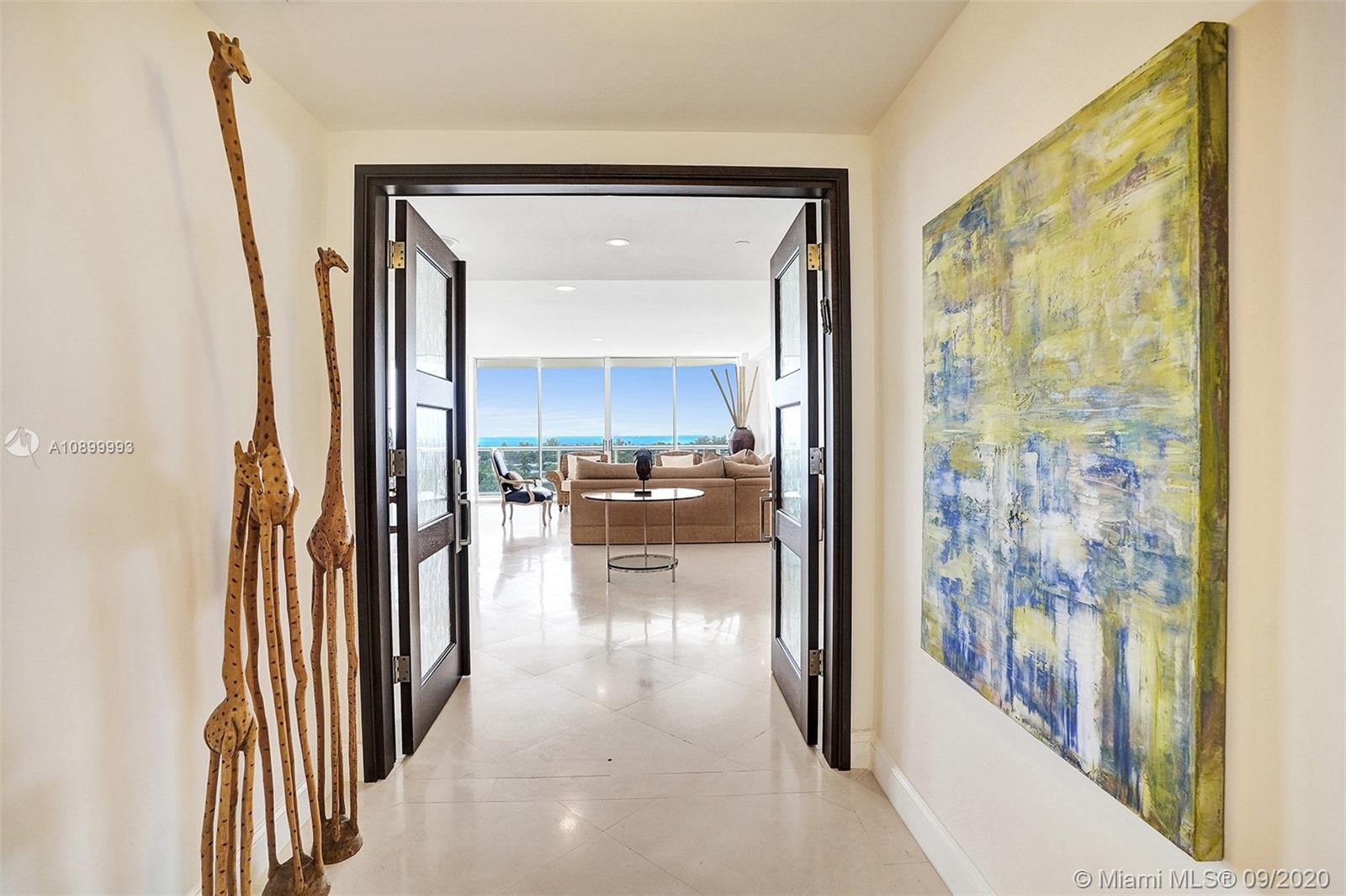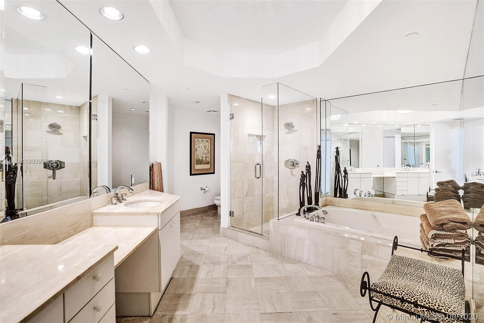 Beautiful limestone floors lead the way from your private elevator entry foyer to endless ocean, intercoastal, and Golden Beach views, leaving you breathless. Not only does this spacious home have terraces and sliding glass doors from every room, but it also offers an updated kitchen, home office area, and the most incredible sunlit energy that flows throughout. The third bedroom is now a den/home office, which with the snap of a finger, can be the third bedroom again. This home boasts a brand new a/c and custom spacious closets. Click on the video tour above to get the full feel of this fantastic layout. One Island Place, private and walking distance to so much, will satisfy the pickiest of buyers. One Island Place offers two pools, barbecues to use, renovated gym, poolside cafe, and more