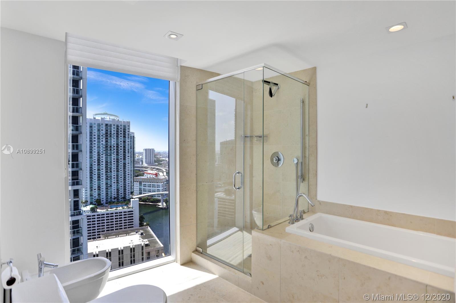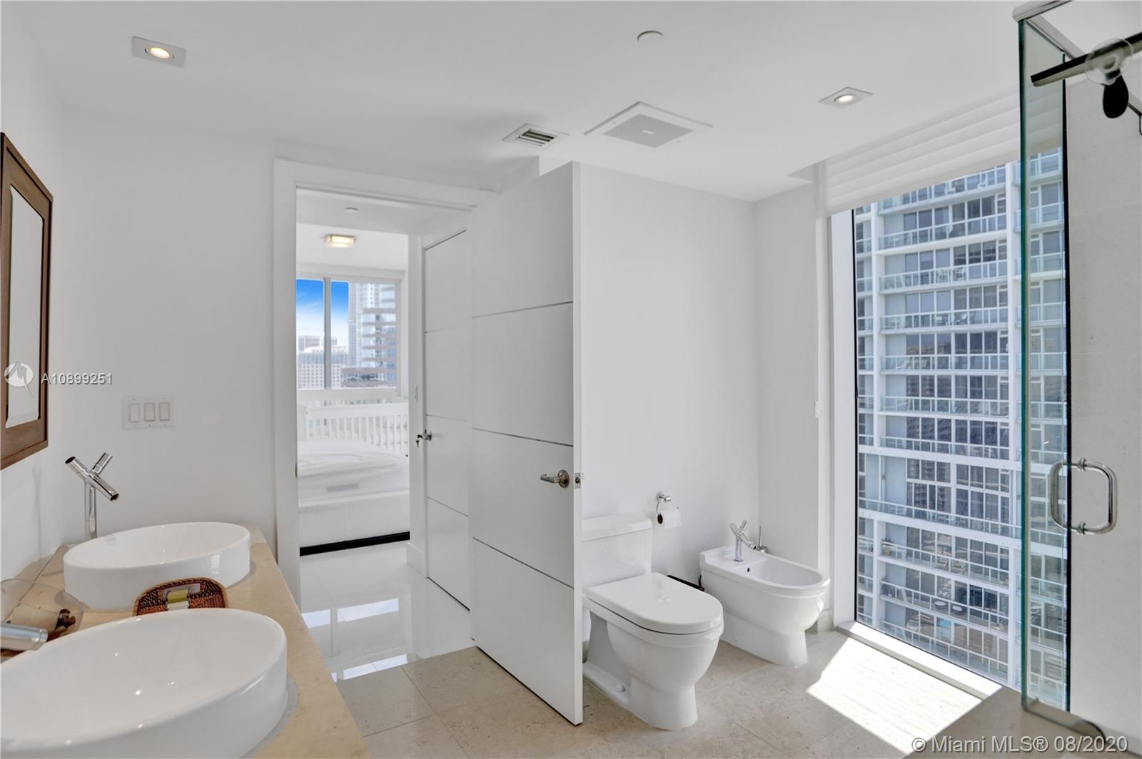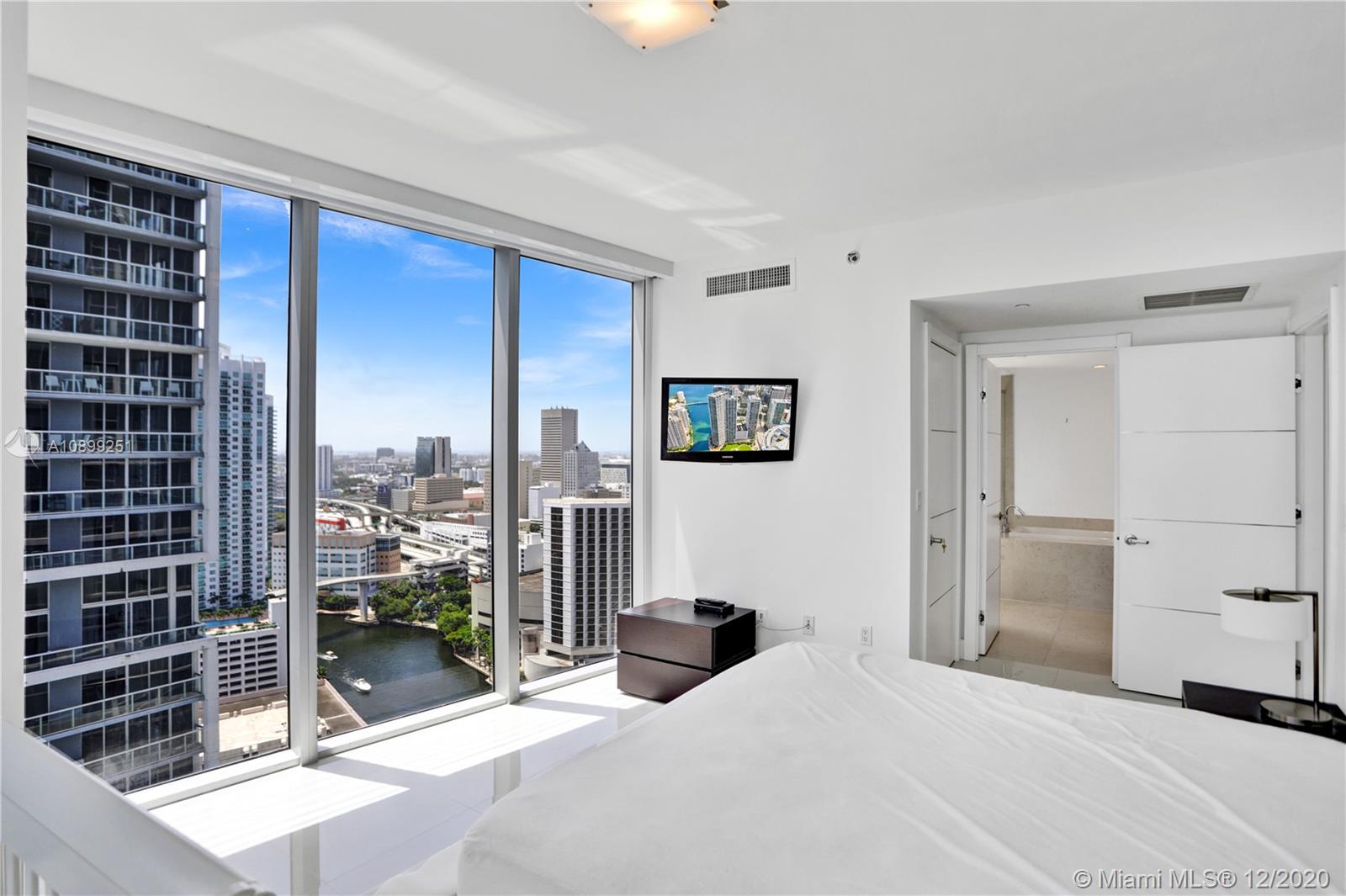 Iconic building on Brickell like no other! This inviting corner unit has a split bedroom plan finished with custom made wood doors and closets. Beautiful 24 x 24 white flooring throughout, top of the line appliances, assigned parking space and electric shades with blackout in bedrooms. Access your expansive balcony from every room and enjoy bay views to the East, the Brickell skyscrapers to the South and the Miami River to the West. With fine dining like Cipriani Italian Restaurant and Cantina La Veinte, over the top amenities like the IconBrickell Spa, three infinity pools, poolside lounge service, 24hr valet, state of the art fitness center, protected green spaces on either side of complex and more, there's no other place to live but at Icon Brickell!