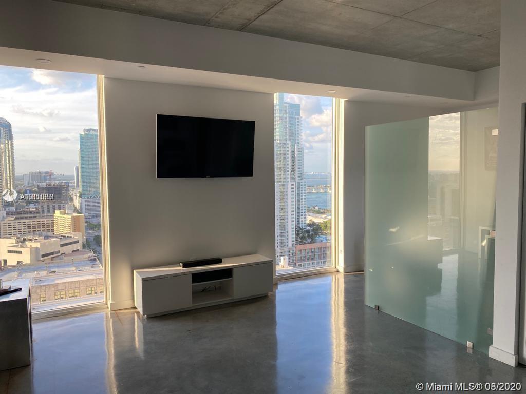 Beautiful loft-style 1 bedroom/1 bath unit at Centro, the most modern building in downtown Miami. Open floor plan with upgraded glass wall divider for bedroom privacy. Polished concrete flooring, stainless steel energy smart appliances, Italian cabinetry and stone countertops. Floor-to-ceiling windows with amazing bay and city views. Resort-style amenities designed by Yves Behar including a rooftop pool with a 360-degree view of Miami, a two-level clubroom, skyline lounge, sauna and exercise room. Water, basic cable, and basic internet is included. Great location close to Brickell City Centre, Bayfront Park, and the American Airlines Arena. Do not miss this one!