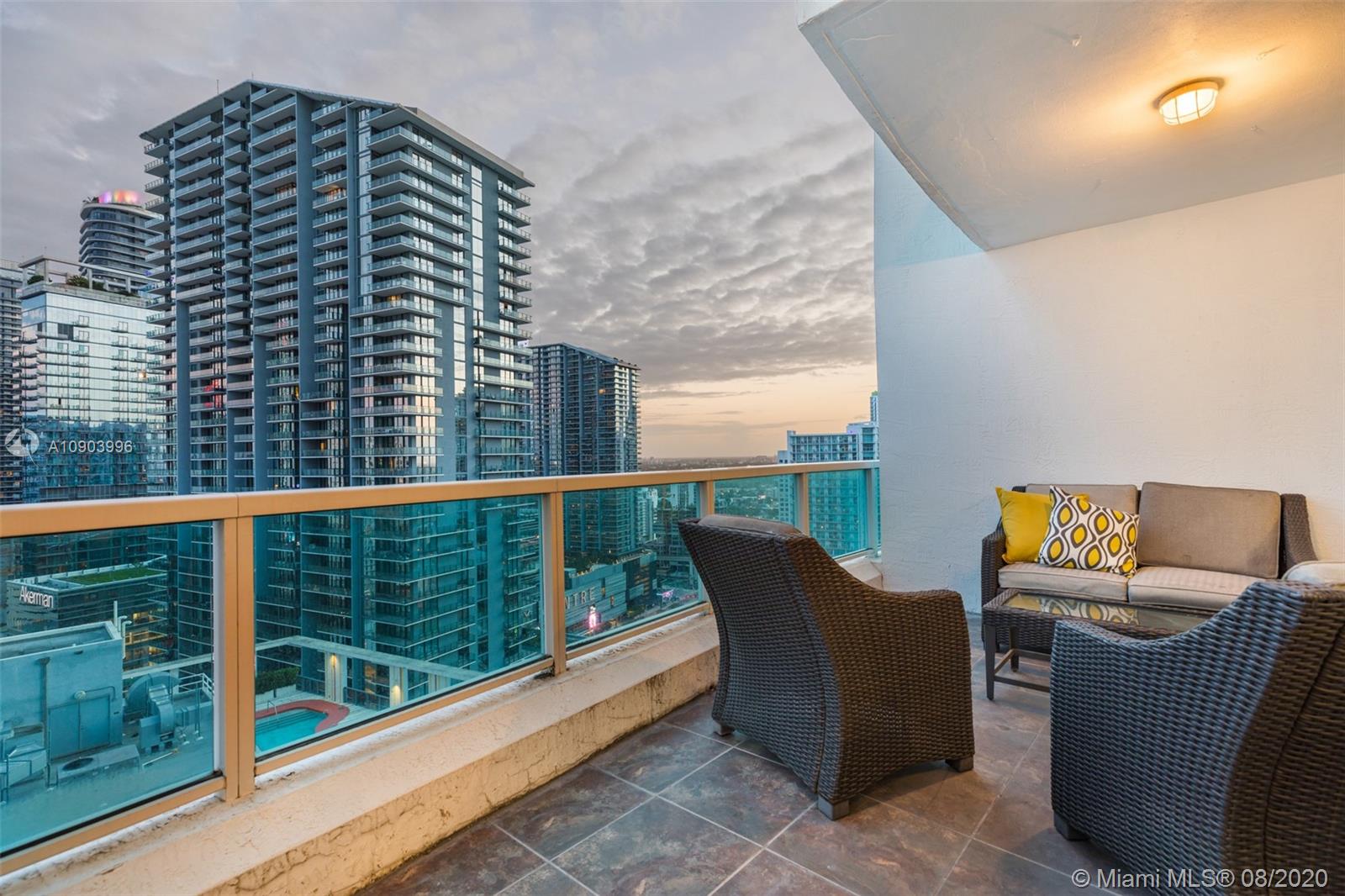 Turn the key to the Lovely Loft - the cutest 2/2 with a huge double story balcony and extra den/office space. Because of the double-height ceilings, this “18th floor” unit is really on the 36th, giving residents magnificent, unobstructed Brickell views. What makes this 1,402 SF unit different is the amount of storage - 6 closets including a large area under the stairs. The open master bedroom upstairs overlooks the living space downstairs, and there is a spacious nook that can be used as an office space or seating area. Namely, Brickell on the River is in a prime location - in the middle of the action but also on a large lot with a riverwalk, a restaurant, and metro access. Residents love the luxurious feel and the amenities, including 2 infinity pools and 5 level fitness center.