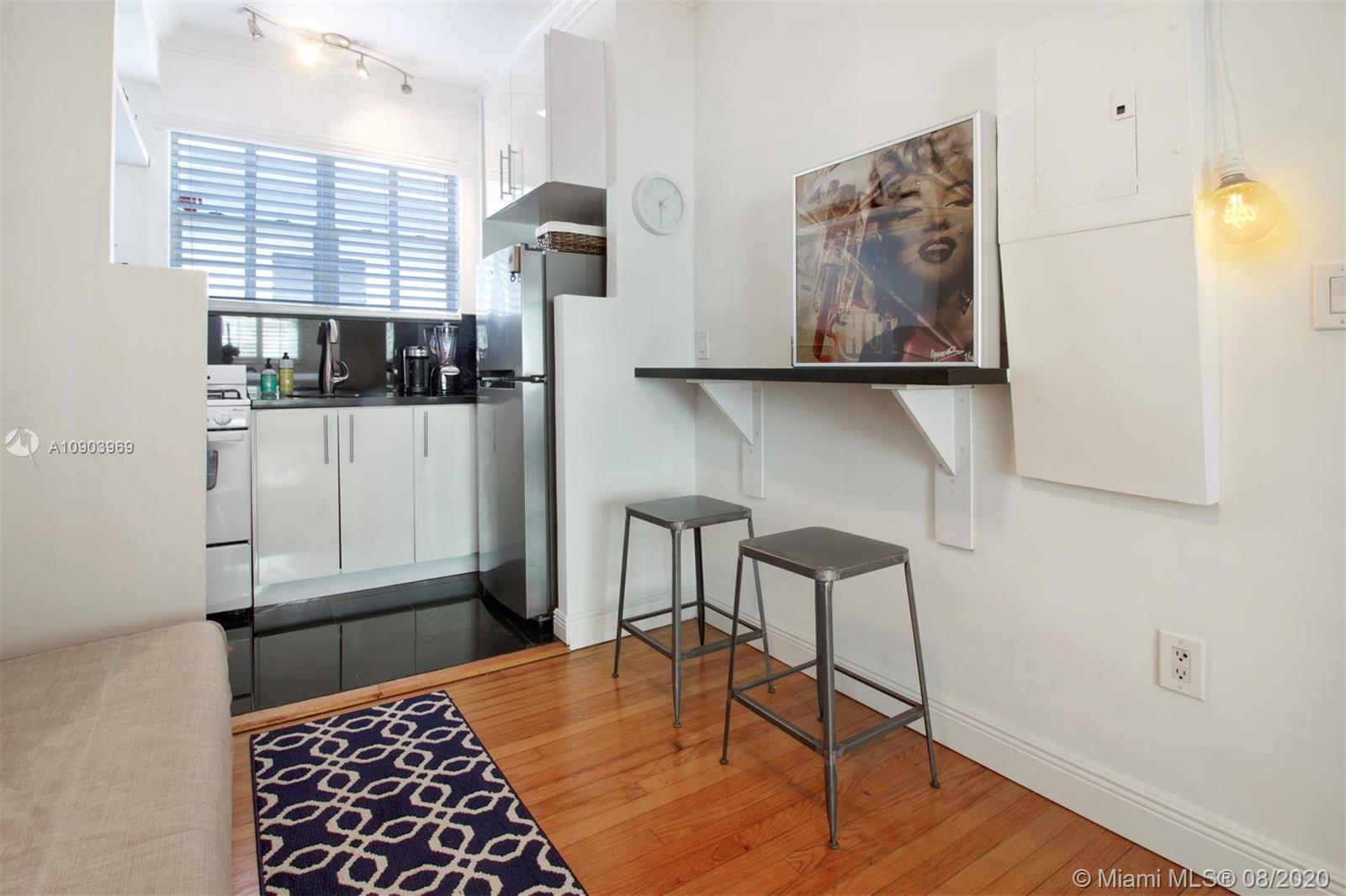 Completely remodeled junior 1 bedroom apartment in a classic Art Deco building. Perfect for a pied-a-terre just a few blocks from Lincoln Road, Flamingo Park and the beaches. Upgrades include new plumbing & electric, kitchen, bathroom and AC. Unit can be delivered turn-key.
