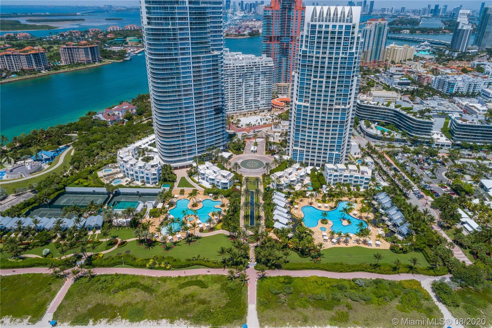 Meticulously and completely remodeled with the finest elements and a streamline minimalist design, the luxe condo perfectly frames some pretty stunning ocean views. Entertain or relax in the spacious living dining area with custom designed open kitchen featuring a porcelain island, Miele refrigerator, convection ovens. An oversized oceanfront terrace overlooks the South Beach coast line + the iconic tip of South of Fifth, ushering in the parading cruise ships. Continuum offers its residents a unique lifestyle within a private 12.5 acre beachfront oasis. An al-fresco Italian restaurant, beach club +lounge service, tennis club with Har-Tru courts, two freeform pools, 18K SQFT gym, lap pool, spinning +Pilates all offer a lifestyle of wellness.