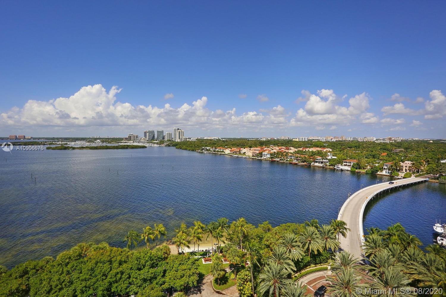 Enjoy unobstructed views of Biscayne Bay and the Grove skyline from this 15th floor residence. Light-filled living spaces open to covered balcony, ideal for enjoying the bay breezes. Updates include travertine flooring & custom built-ins throughout. Stunning kitchen feature European-style cabinetry, quartz countertops & top-of-the-line appliances including wine storage. Large master suite with walk-in closet & luxurious bath w/ soaking tub and glass-enclosed shower. First-class building amenities include concierge, on-site restaurants, 14 Har-Tru tennis courts, marina, private beach, jogging path, spa, fitness center & heated pool. Just across the bridge from the Grove village center's galleries, boutiques and cafes. Minutes to downtown, MIA and the Beaches.
