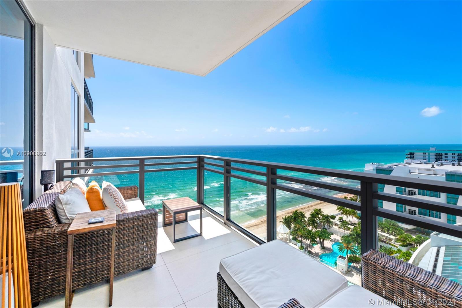 Stunning oceanfront furnished turn-key residence masterfully designed, renovated and built out by renowned Troy Dean Interiors. Panoramic views of the Ocean, Intracoastal and City from the north and south terraces. Featuring 2 Bedrooms, 2.5 Baths, plus the additional bedroom that was converted to a glass enclosed den. Private foyer entry, highly upgraded, dropped ceilings with custom lighting and Control 4 automation. Natural sunlight bathes the open plan living and dining room blending naturally with the beachfront setting. Fully equipped custom gas kitchen, double ovens & oversized island makes it a perfect spot for entertaining. Common areas are currently being totally renovated with no assessment. Residents enjoy the adjacent Diplomat Resort amenities including beach service & more
