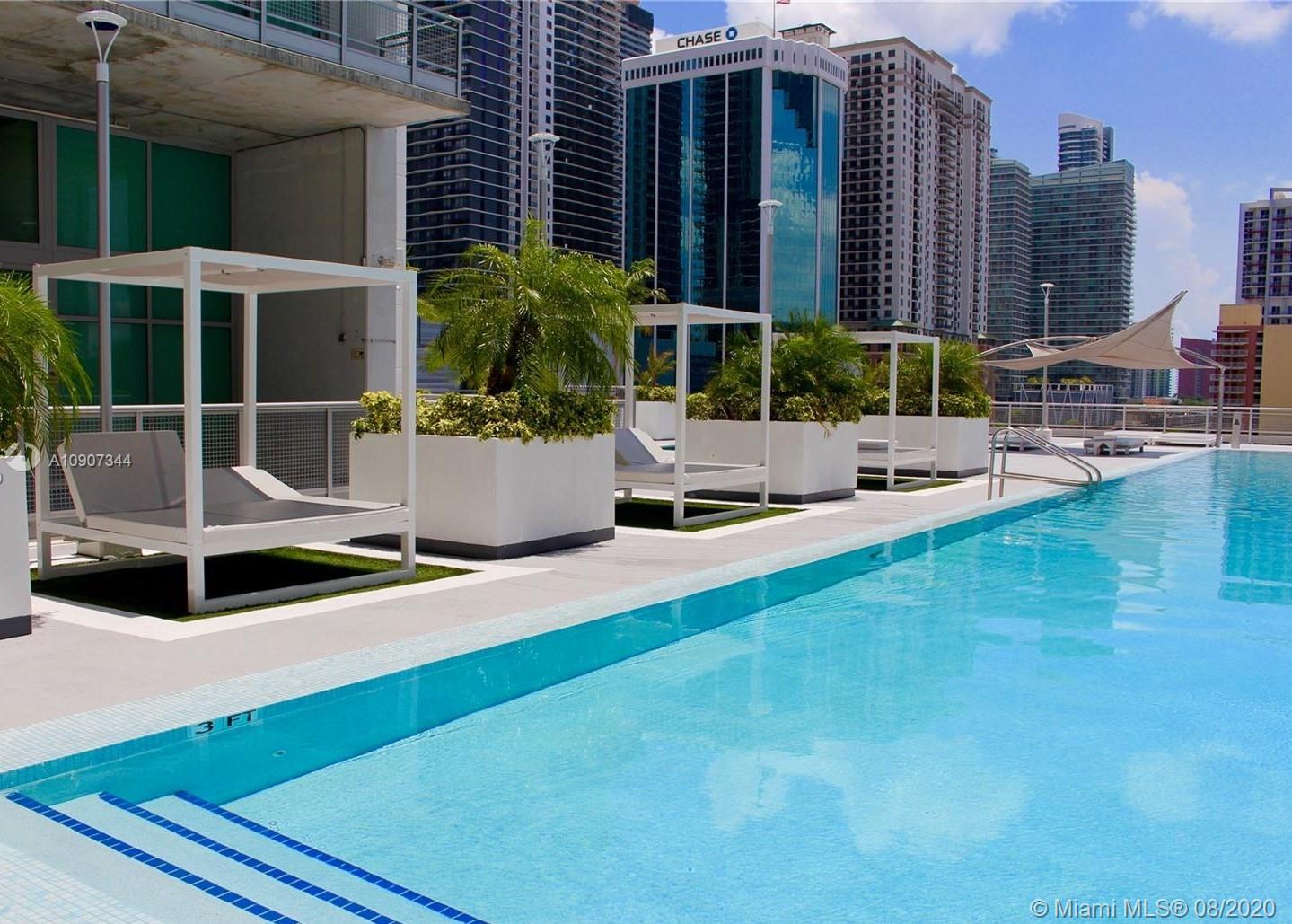 Beautiful and Fully furnished 1 bedrooms 1 bathroom apt in the heart of Brickell. This meticulously cared for apartment has all the designer touches one could ask for. Plenty of light throughout the day with a dynamic view of the Pool, Downtown Miami skyline The kitchen has been updated with plenty of cabinets. Designer touches throughout, every inch of this space has been utilized for a convenient live/work/entertain lifestyle.