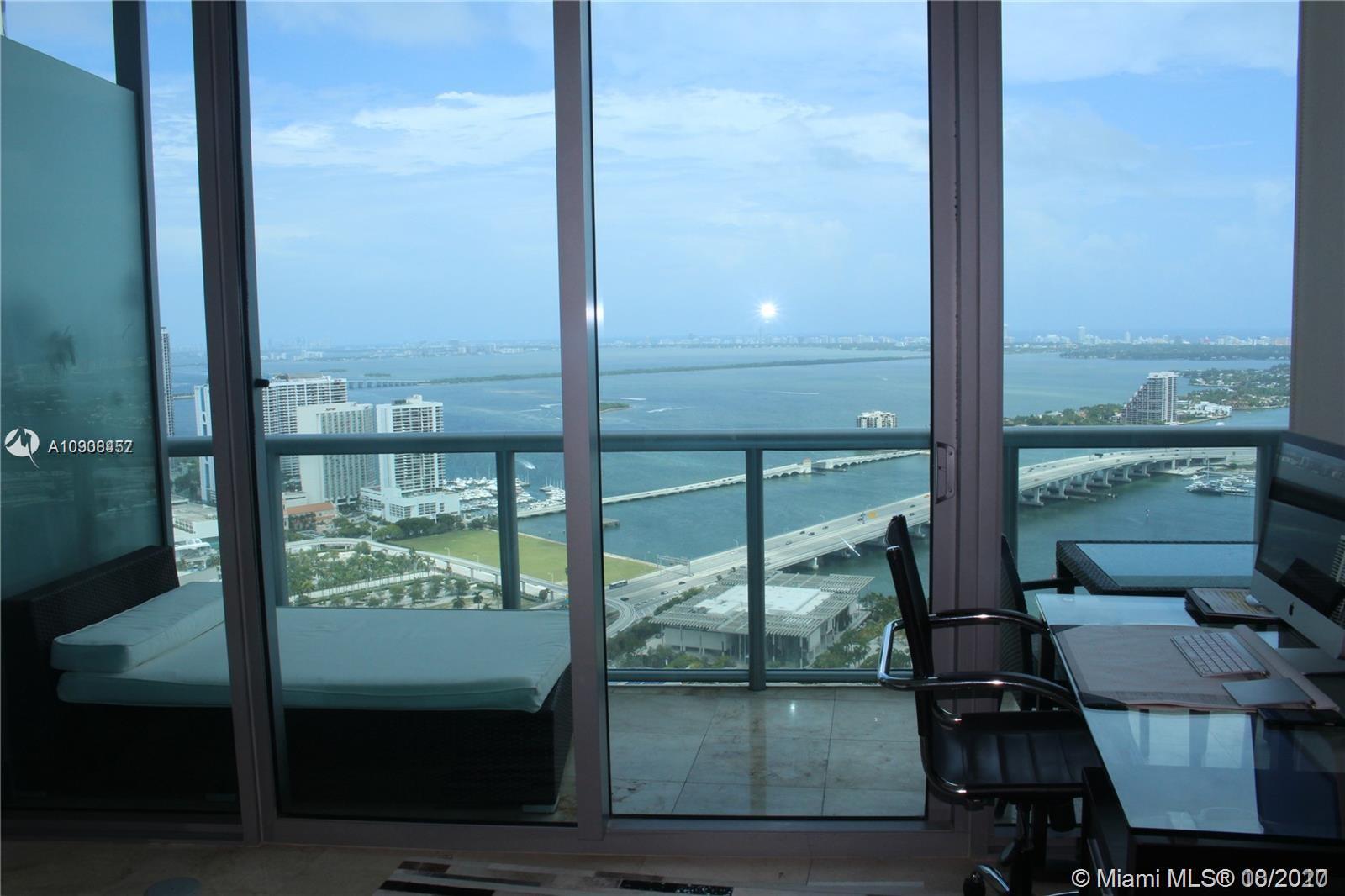 Breathtaking panoramic views of Biscayne Bay, the Atlantic Ocean and Miami Beach skyline from the 49th floor. 2 Bedroom- 2.5 Bathroom split floor plan at Marina Blue. Floor to ceiling hurricane impact windows; 10ft. ceilings; marble floors throughout, counter tops and stainless steel appliances. Only 6 units of its kind in the entire building. Luxury building with spectacular amenities including 2 pools, outdoor lounge, volleyball court, putting green, state of the art gym & much more.