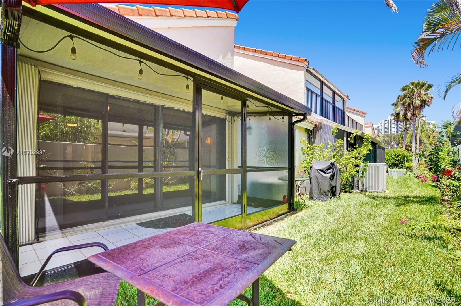 Incredible opportunity in Aventura. Corner townhome in beautiful La Mirage at Harbor Village. Highly sought-after location within the community: a large green area next to the unit. 2 Bedroom/2 Full Bathrooms. One car garage and one car driveway. Vaulted ceilings and accordion hurricane shutters. Brand new A/C. Walk to the marina and Waterway shops of Aventura. Close to Gulfstream racetrack/casino, Aventura Mall, restaurants, and parks (including a dog park). Guarded security gate, 24hr security patrol, ample guest parking. Click for a video: https://youtu.be/wGQzfW154ec