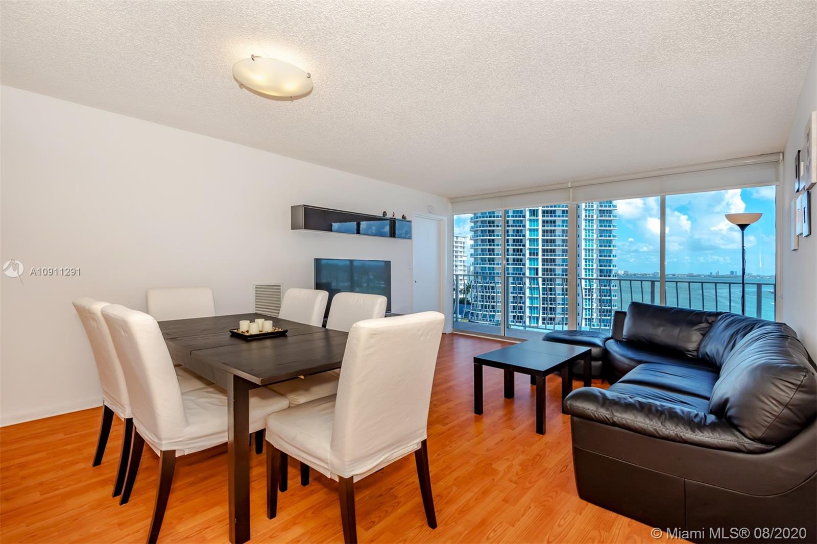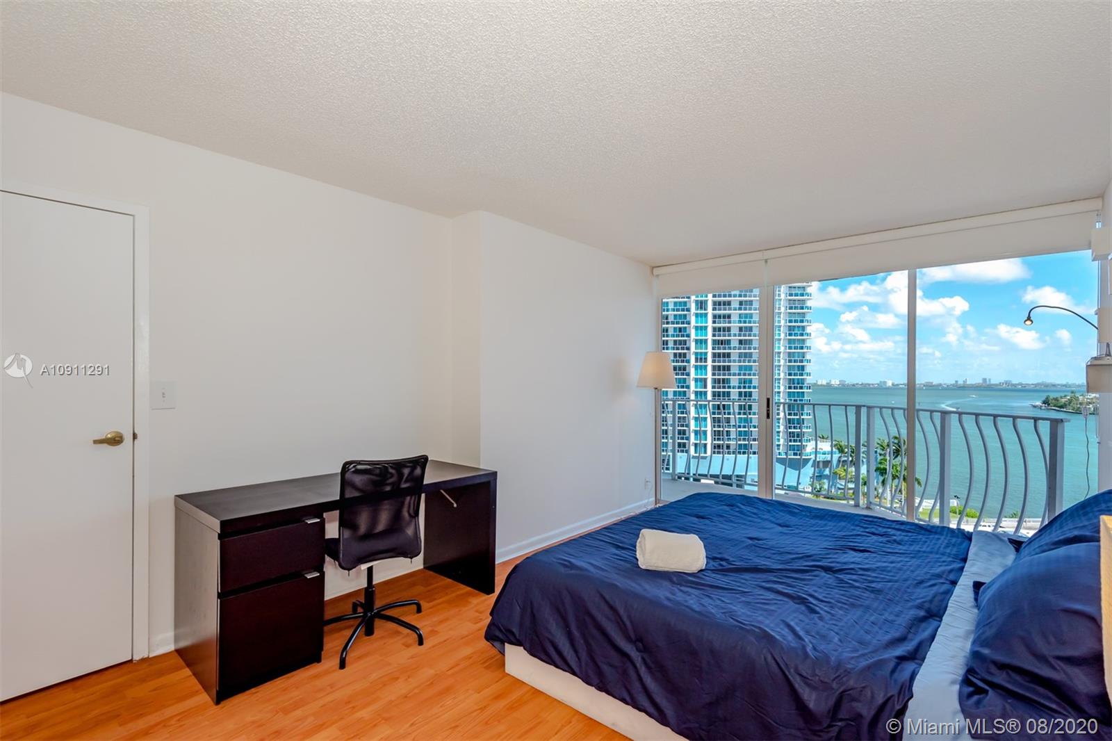 Spectacular 2 bedrooms 2 baths split floor plan with beautiful bay and city views. Located in a waterfront building with marina. Unit has laminate floors and 2 assigned covered parking spaces.Large balcony and floor to ceiling windows to maximize the views. Access to the balcony from every room.