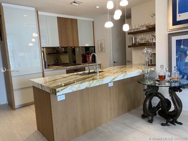 Spectacular, high-end customized unit with unique floor plan. This stunning 2-bedroom, 2-bath Park Grove Condo features Italian wood-grained Porcelain tile, magnificent chef’s kitchen with Italian cabinetry, gas stove, Paonazzo marble countertops, and Wolf-SubZero appliances. Custom built closets, interior security cameras throughout, and exquisite crystal shelving. Floor to ceiling windows and oversized terraces overlook lush landscaped gardens by Enzo Enea, as well as breathtaking ocean and city views. Parking includes electric vehicle charging station. Elegant amenities and impeccable service provide for the ultimate luxury living experience. Close to shops, restaurants, theaters, hospitals, and much more.