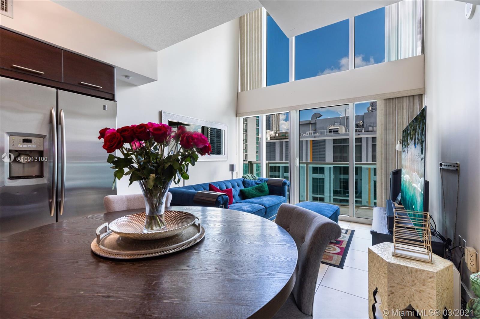 Beautiful 2 story loft in trendy Brickell on the River south tower. 2 bedrooms / 2 full bathroom, 2 balconies, 16 Ft ceilings. Master bedroom has its own private balcony and den or extra office space.NEW Full size washer and dryer. Price includes 2 PRIVATE STORAGE CAGES. VIP assigned parking space located in the first floor right next to the main entrance of garage. Building offers 2 pools, state of the art Gym with complete cardio and weight station, Spa with steam room/sauna and jacuzzi tubs.Centrally located Steps away from Brickell city centre, Restaurants and shops!