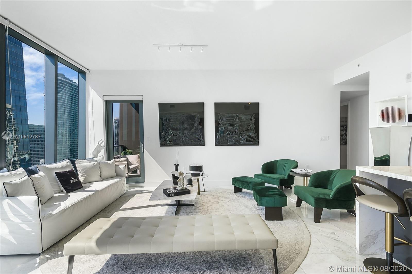 An immaculate corner unit nestled in the heart of Brickell, this 2-bedroom, 2.5-bathroom home is a seamless contemporary boutique chic condo with bay and skyline views of Brickell. Features include gorgeous marble floors, high ceilings, hurricane proof windows, Custom MAGNIFICENT closets, Italian glass cabinetry, marble counter tops, Sub-Zero, Wolf, Bosch, outdoor BBQ, Apple Home Technology. BUILDING FEATURES: Infinity-edge pool, state-of-the-art gym and spa deck with panoramic views of Biscayne Bay and Downtown Miami, 24/7 concierge, valet, pets are welcome and dog walker available, a TRUE GEM!