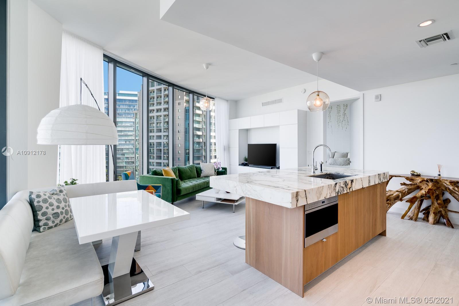 Fabulous home in the sky at Club Residences at Park Grove, Coconut Grove's most esteemed address. It's luxe living in this 2BD + den on the 14th floor w/ walls of glass and sunshine overlooking Downtown and the Beaches, 10' ceilings, porcelain floors, dreamy kitchen w/ Italkraft cabinetry, oversized center isle, Wolf+Sub Zero appliances, and bonus den. Residents enjoy 5 acres of breathtaking gardens as well as the world class amenities of 24-hour concierge & valet, state-of-the-art fitness room, spa & yoga rooms, glorious pools & private cabanas, private screening room, wine tasting room & cellar, club room, children’s indoor & outdoor play areas, and famed Tigertail + Mary restaurant. Don't miss the opportunity to live in this slice of international architectural history!