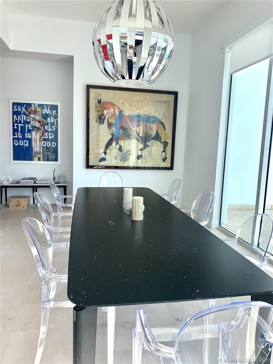 Beautiful views to Biscayne Bay and Miami's exuberant skyline. Elegant and modern decoration, brand furnished and comfortable rooms with complete accessories for livingroom and electric shades. Very nice marble floor. Twelve square foot high ceilings. Terraces with glass railing hight impact door. Elegant stone kitchen countertops and backsplash, Miele kitchen appliances. 4 beds, 4 1/2 baths with 2631 sqft area under air conditioning. Private elevator direct to the apartment. Two covered parking spaces.