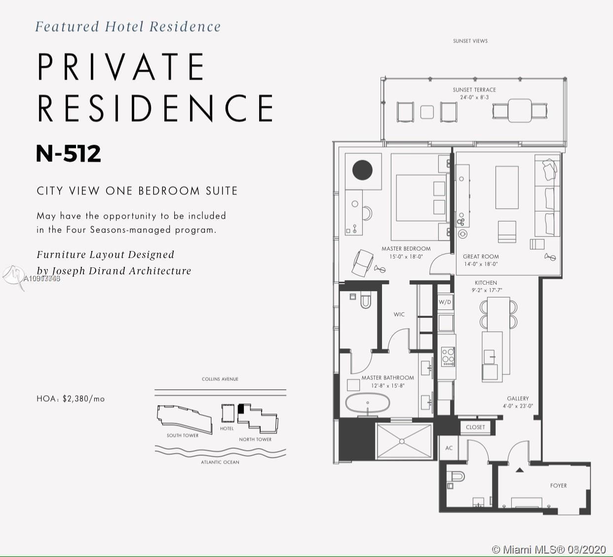 Enjoy FOUR SEASONS LIVING & EXPERIENCE THE ART OF HOSPITALITY with this Turnkey Hotel Residences fully furnished & designed by Joseph Dirand. As a hotel residence owner you have the opportunity to be included in the Four Seasons Hotel-managed program.