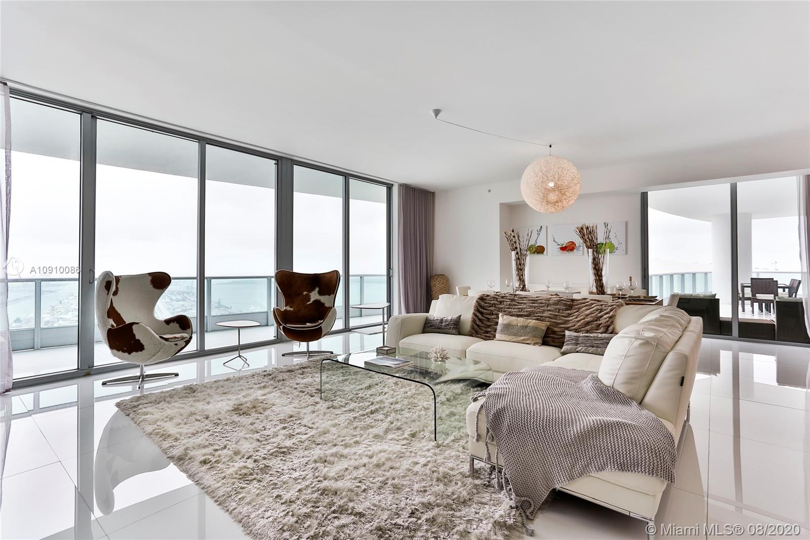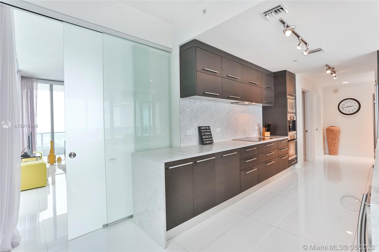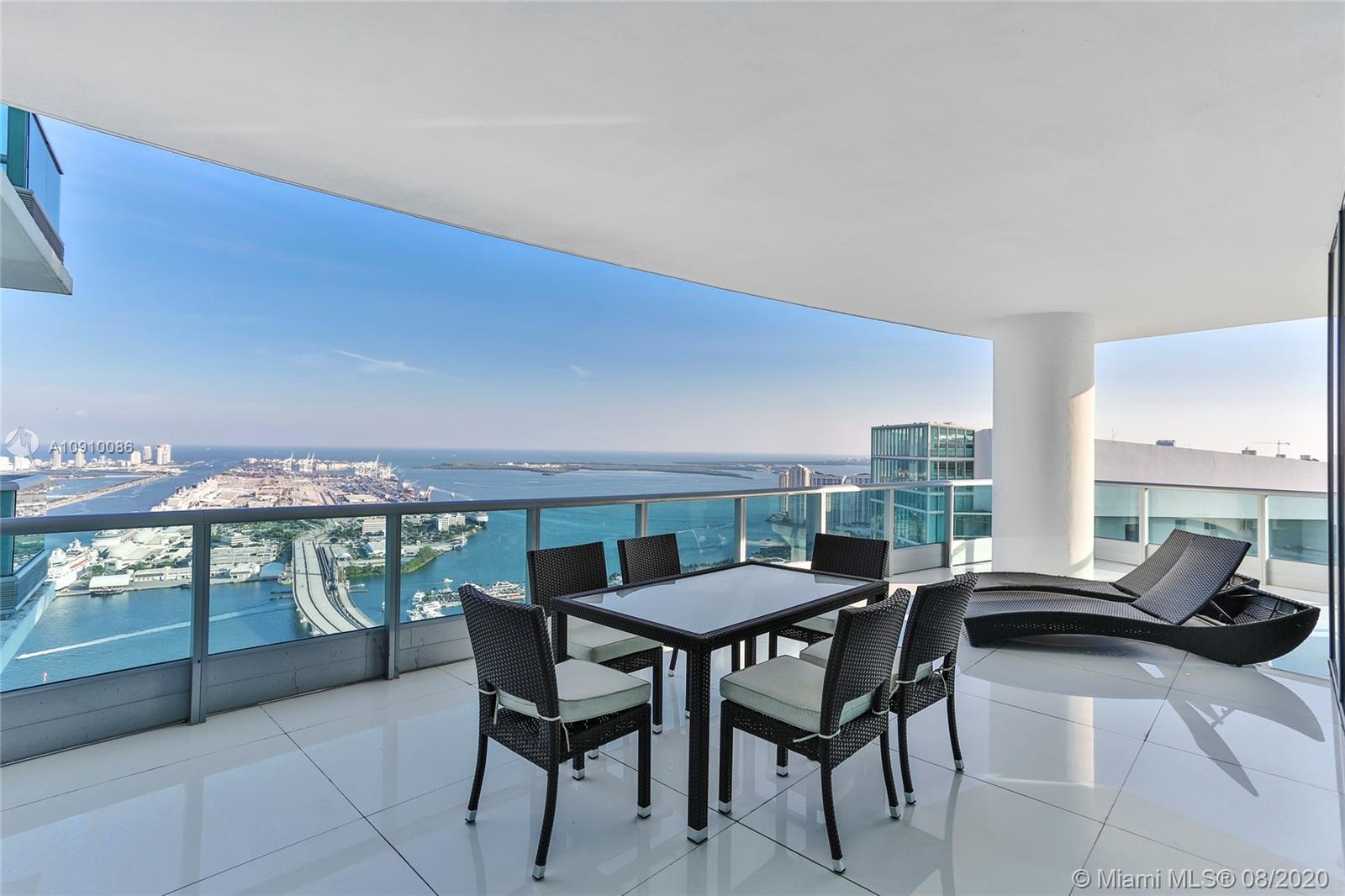 Miami’s prime penthouse is a showcase in versatility: serenity of design & space can flow into an entertainer’s paradise. Arriving at your private elevator foyer you are greeted with diverse & mesmerizing views, all while located in the beating heart of the new Miami! A 270-degree view corridor overlooks Biscayne Bay & the islands of South Beach to the E, the cityscape of downtown to the SE & endless lights of Miami to the west. Huge SE corner balcony is a real treat & functional space you will use endlessly - 1 of 3 oversized terraces featuring over 1,200 sq. ft. Huge kitchen w/waterfall counter makes cooking a pleasure. Easy access to SoBe, Wynwood, Arsht Center, Brightline, Perez Art Museum, AAA – this is the center of it all!