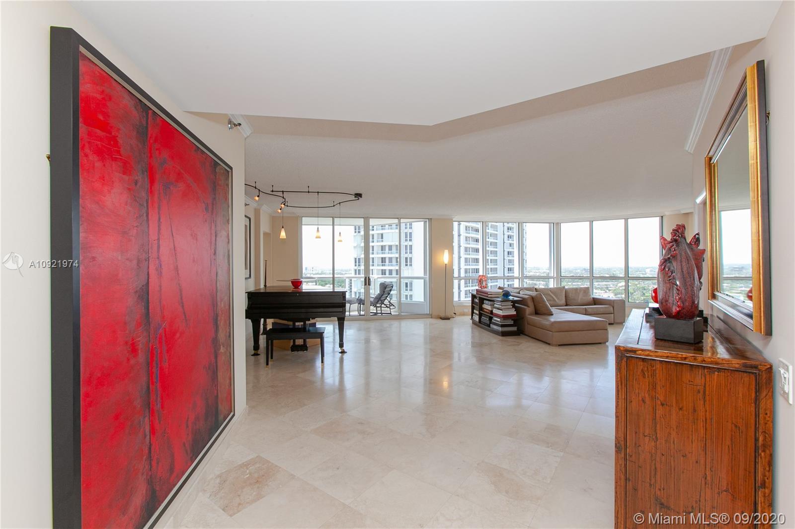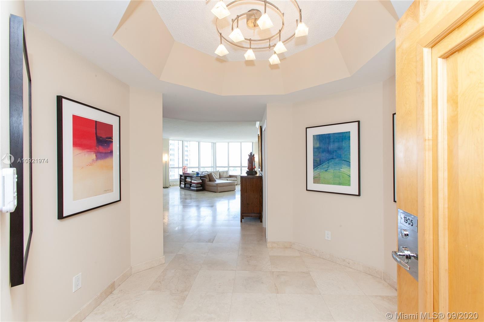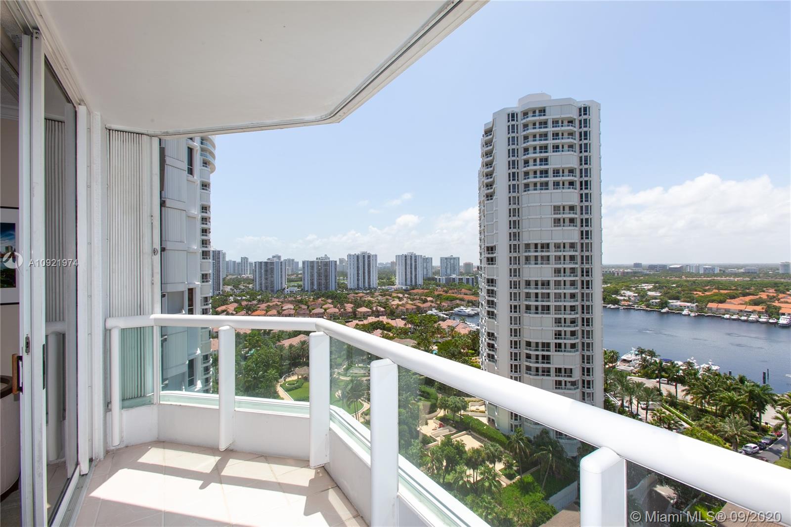 THIS IS THE ONE! Be wowed by Floor to Ceiling 280 degree windows with panoramic water views of the Intracoastal, Marina, and Ocean. This beautiful, pristine 19th fl residence has 2 beds, 2.5 baths. Finest finishes incl. New A/C, New Water Heater, New Washer/ Dryer! All windows have hurricane shutters, protective shatterproof coating, & custom window treatments, & custom closet built ins. Large living area w/ 3 balconies makes entertaining a dream (can also be converted into 3rd bed). This 5 star gated community is having a complete Multi-Million Dollar makeover by famous interior designer Steven G. ASSESSMENTS ARE PAID IN FULL! Amenities include: 25,000 sf Gym + Spa, 3 Pools, 4 Tennis Courts, Kids Playground, Library, Card Room, and Cafe. Easy walk to Aventura Mall, Whole Foods, and more!