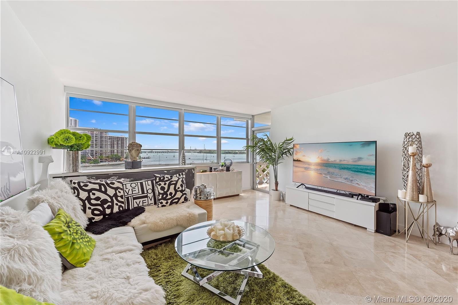 Fabulous Direct-Bay Views from wonderfully renovated spacious, 897 sq ft, SOUTH facing 1 BD/1.5 BA on Belle Isle. Wonderful Open Kitchen has hi-end SS Appliances, white cabinetry and lots of storage. Unit has beautiful Marble Floors, Renovated Bathrooms, Large Closets, great Open Balcony, Hurricane Impact Windows & Door. Enjoy full-amenity bldg: Doorman, large heated pool, spa, newly renovated hallways & gym, tennis, BBQ area, bike storage, security, & parking. A/C, hot water, Internet, & TIVO Cable incl in maintenance. Great location: Across from Standard Hotel, 7 min to Downtown, quick walk to Restaurants & Shops at Sunset Harbour & Lincoln Rd. EASY TO SHOW!