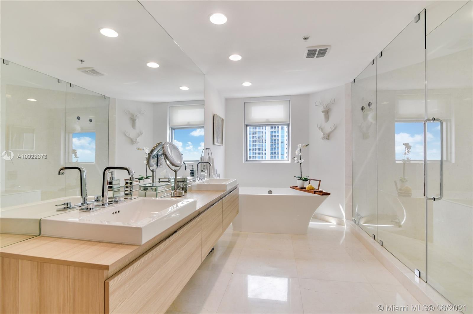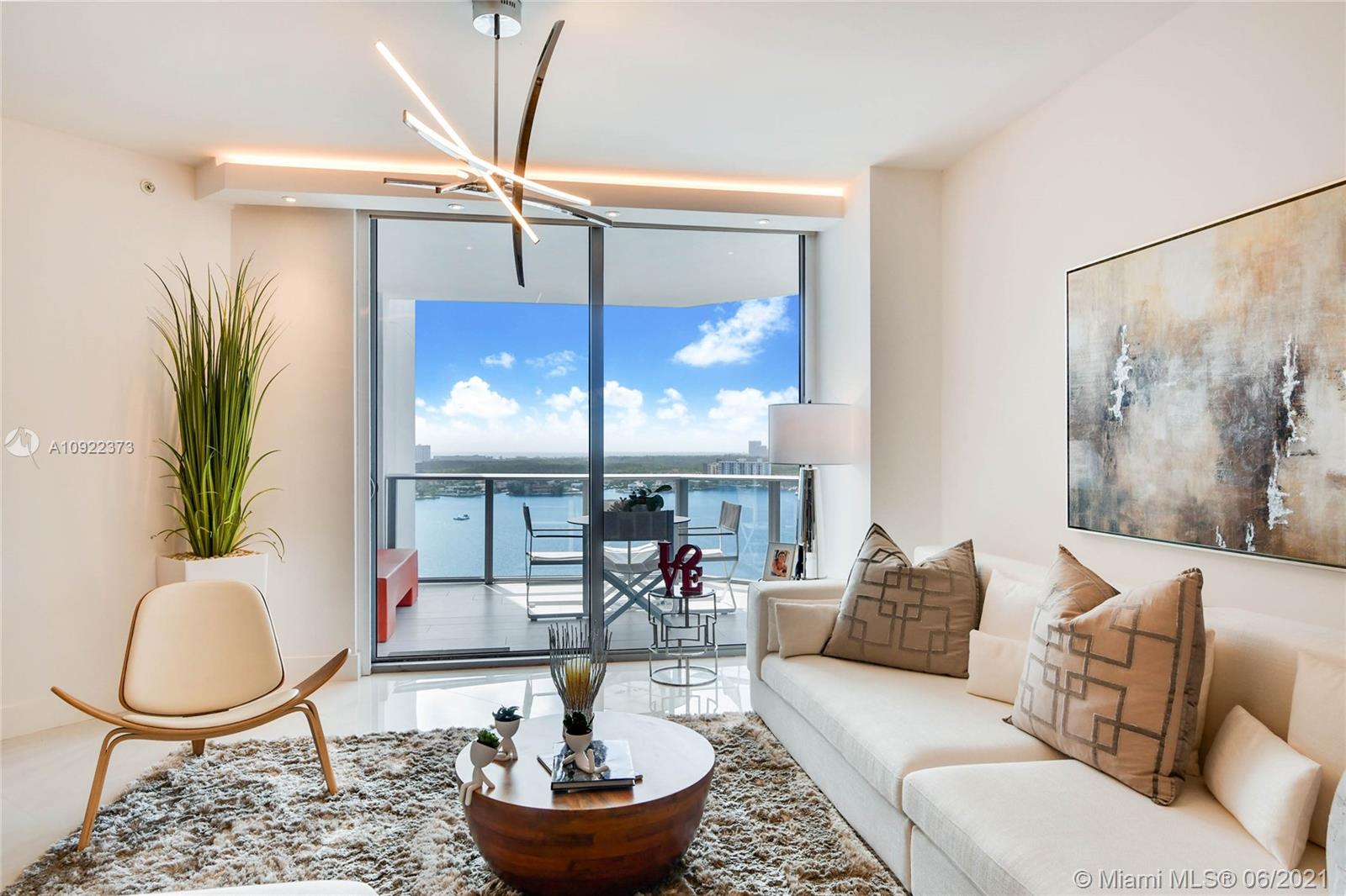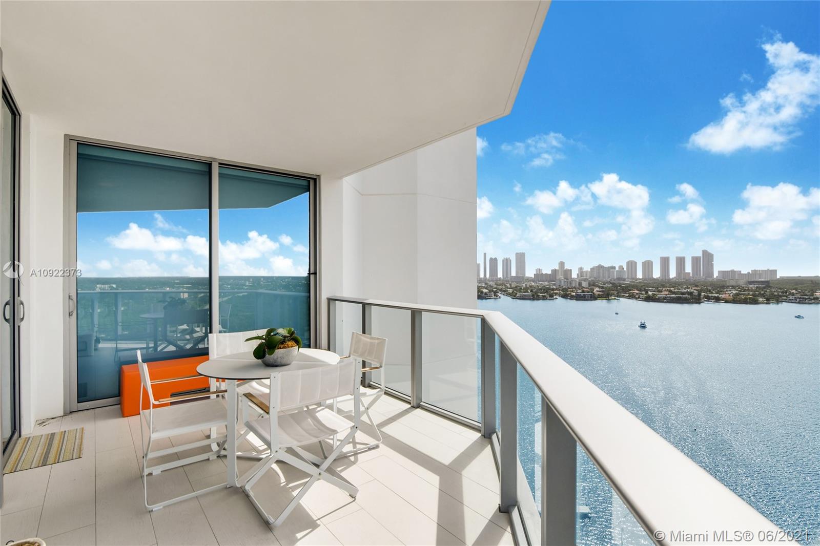 Marina Palms Residences unit 1803 at North Tower Yatch Club. Stunning substantially decorated, by a designer, Large open living-room and dinning-room. 2 split bedrooms with Balcony access & 2 baths, 1,670 SqFt. Direct Ocean, Intercoastal and Marina Views from all rooms and master bathroom. Walk-in closet with custom built-ins and spa-like bath with tub and glass shower. Large open kitchen with breakfast area, Snaidero cabinetry, quartz counter-tops, Wolf appliances. Laundry with cabinets . This unit includes 1 assigned parking space and 1 valet complimentary also an storage space. This building has 5 Star amenities, fitness center, spa, business center, teen+ kids room, social room, outdoor summer kitchen, full service with Private Marina available and boat club.