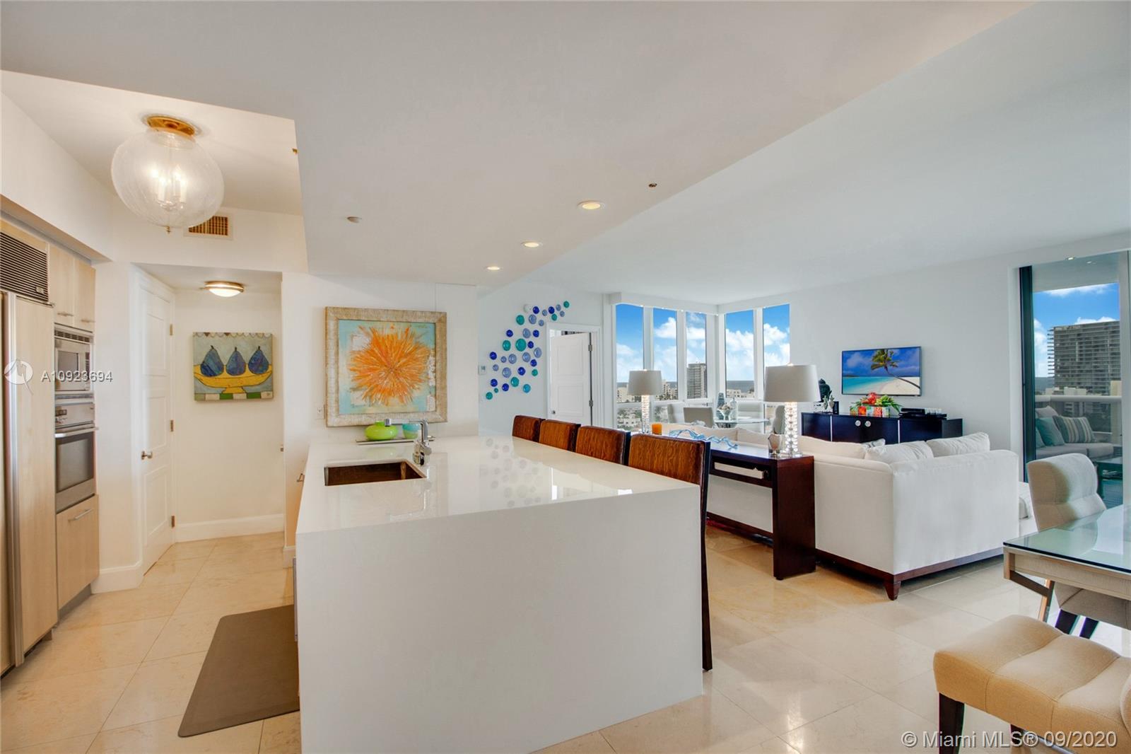Welcome to gorgeous #1410 at Murano Grande! This first class luxury building is located in the upscale South of Fifth neighborhood in world-famous South Beach. From the moment you enter this designer-renovated condo, you see stunning panoramic water views. The home has 2 large bedrooms with private baths & a 1/2 bathroom for guests. Enjoy your morning coffee on the spacious, private balcony with SE exposure & watch the cruise ships sail by. The open kitchen has Miele & Subzero appliances. Living room includes a custom-built bar with wine cooler. Resort-style amenities with a waterfront pool, restaurant, tennis, spa & gym. Steps from the Miami Beach Marina & the best restaurants in South Beach. A waterfront path leads to the beach & South Pointe Park. Adjacent condo #1411 is also for sale.