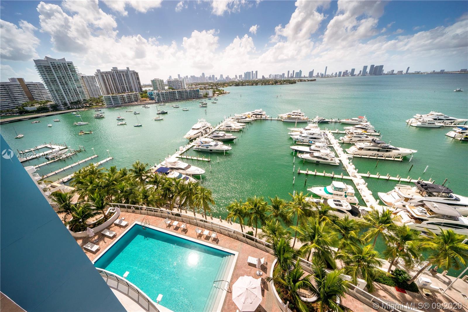 Live the good life in the hottest, trendiest neighborhood in town, Sunset Harbour. The best Miami Beach has to offer at your fingertips in this coveted enclave, walking distance to all your favorites! Incredible expansive west facing marina, bay, city & sunset views greet you as you enter this bright 2bd/2ba/1,120SF home. Stunning black marble kitchen w/ professional S.S. appliances, smart storage, built-in wet bar & Sub-Zero Wine Cooler. High-end finishes; midnight copper slate floors, electric blinds, recessed lighting, spa-like baths & 2 terraces. Building amenities: twin bayfront pools, gym, storage, game & community rooms. Short walk to phenomenal shopping, dining, lounges, parks & more Can't miss this totally renovated ($400K improvements) high floor luxurious south tower residence.