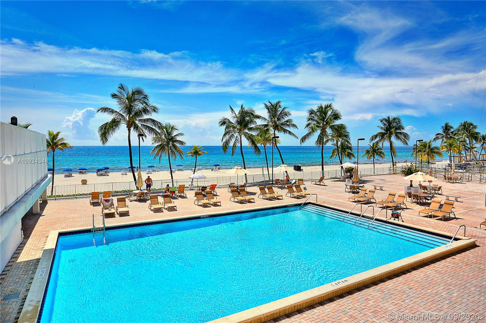 Wake up each morning with an amazing view of the Hollywood boardwalk and Atlantic coastline! Enjoy this spacious 2 bed, 2 baths split condo with an open kitchen. Light and bright interior finishes, ceramic tile floors, IMPACT WINDOWS/BALCONY DOORS. Closets/built-in shelving. Sep storage unit. New-modern lobby entrance by award-winning Steven G Interiors. World Class amenities: 2 heated pools, fitness center, sauna, billiard rm, business ctr, yoga/water aerobics classes, umbrella/beach chair service, on-site restaurants, valet, 24/hr security. Exterior property renovations almost complete. Walking distance to the famous Hollywood Boardwalk, close to Ft. Lauderdale airport, Gulfstream race track, casino, Aventura Mall, and restaurants. Sold furnished.