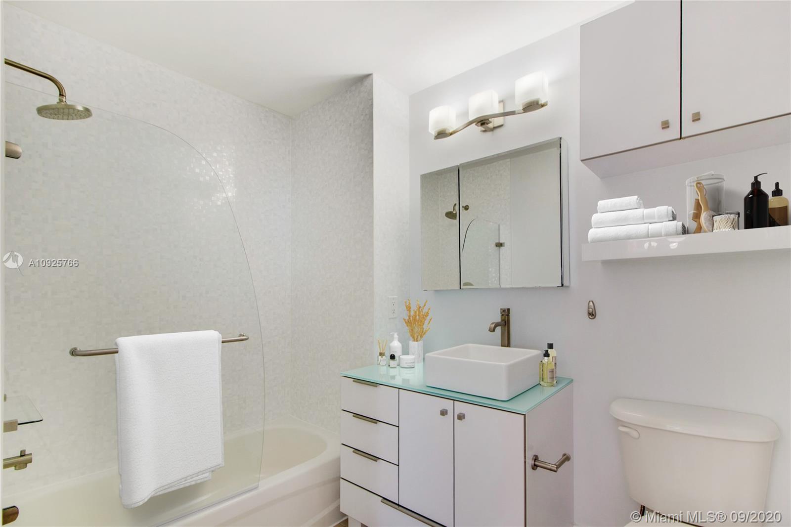Upgraded extra large one bedroom, great for entertaining including one-of-a-kind oversized balcony! Unit features an open concept kitchen with European style cabinets and granite countertops, ceramic floors throughout, high impact windows and walk-in closet. Washer/dryer in unit. Assigned covered parking. 1800 Biscayne Plaza amenities include a large swimming pool with jacuzzi, a fully equipped fitness center, concierge service, 24h security and club room. Located in the coveted Edgewater Miami area just blocks away from AA Arena, Performing Arts Center, Margaret Pace Park, Publix and more! 10 minute drive to Downtown, Brickell, Wynwood, and the Arts & Entertainment District.