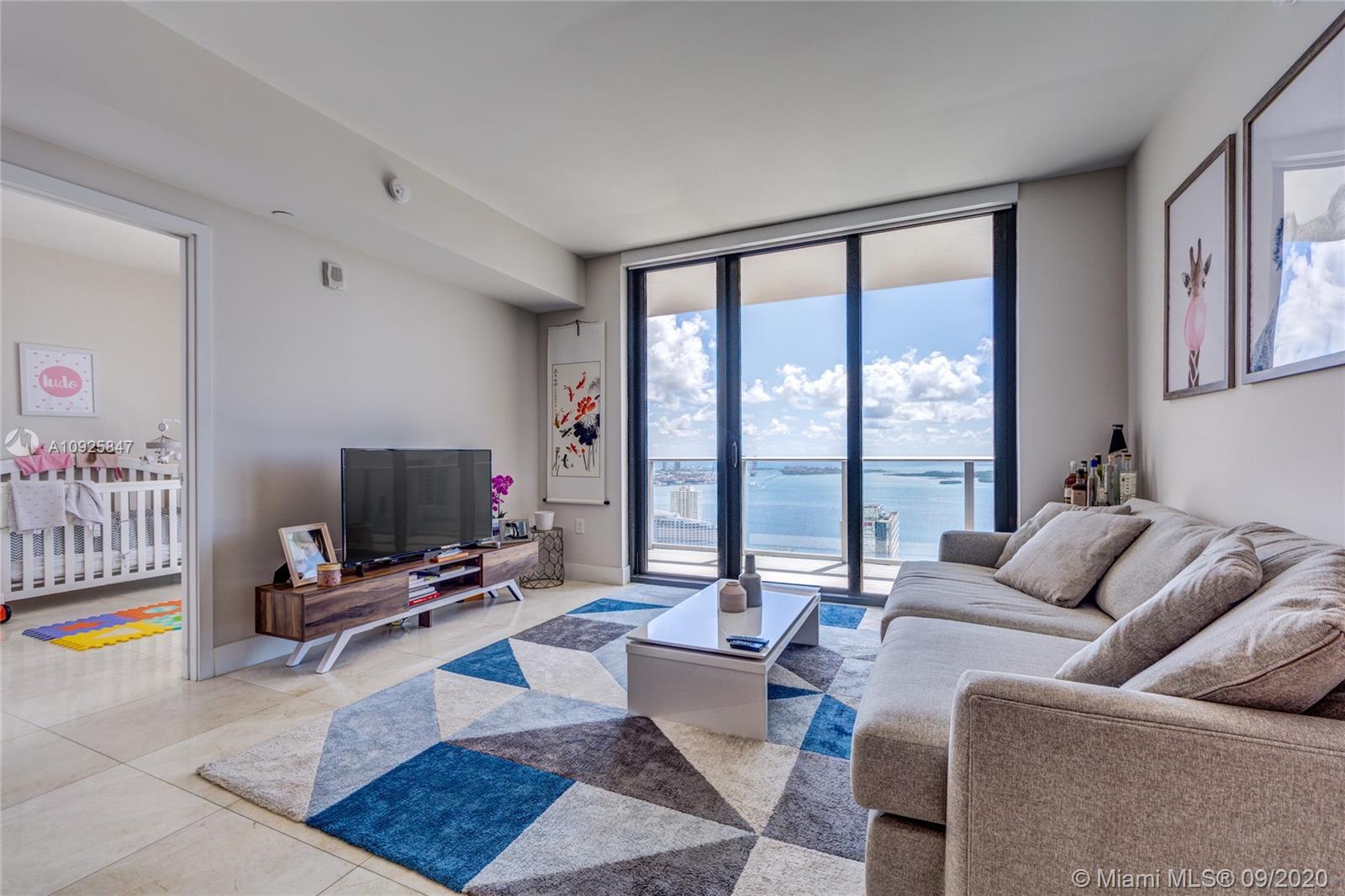 Steps away from Mary Brickell Village & Brickell City Centre, 1010 Brickell is the ultimate urban lifestyle. Gorgeous 46th Floor 2BR/3BA + Enclosed Den overlooking Biscayne Bay. Your private elevator allows you to retreat high in the sky to a comfortable floor plan with generous spaces. Enjoy a spectacular view on your oversized balcony, that adds as an extra entertaining space, perfect for evening gatherings or relaxing sunrises. The modern stone used throughout the unit brings a natural element into the elegant bathrooms. The building is packed with amenities including a 2-level activity center with 2 pools, a rooftop pool with bar, a fitness center, a spa with steam/sauna, massage rooms, kid's water park, basketball courts, bowling alley, and e-Golf. Come see 4603 at 1010 Brickell.